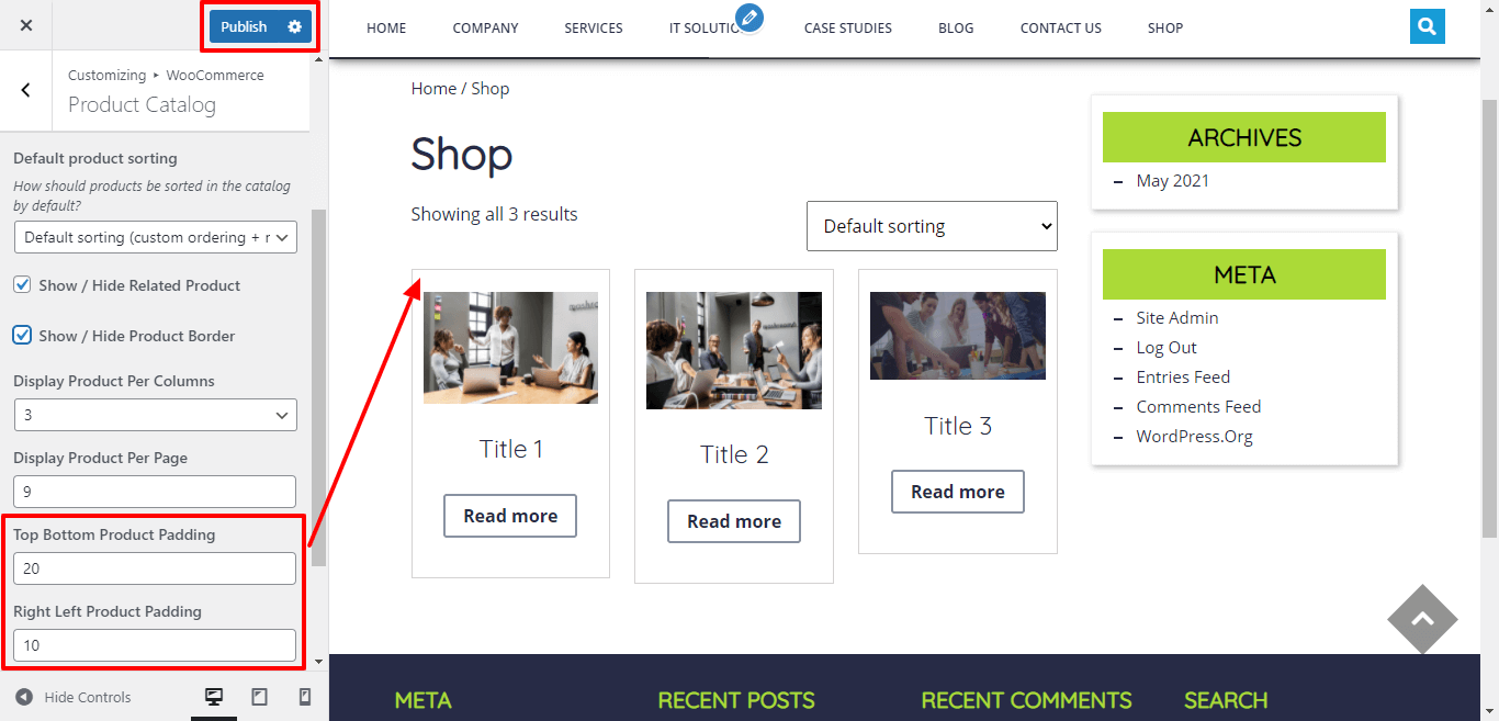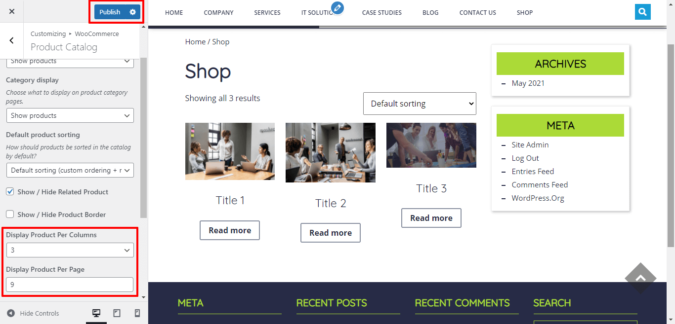 Here You have an option to add select the Number Of Product in one Row and single page.