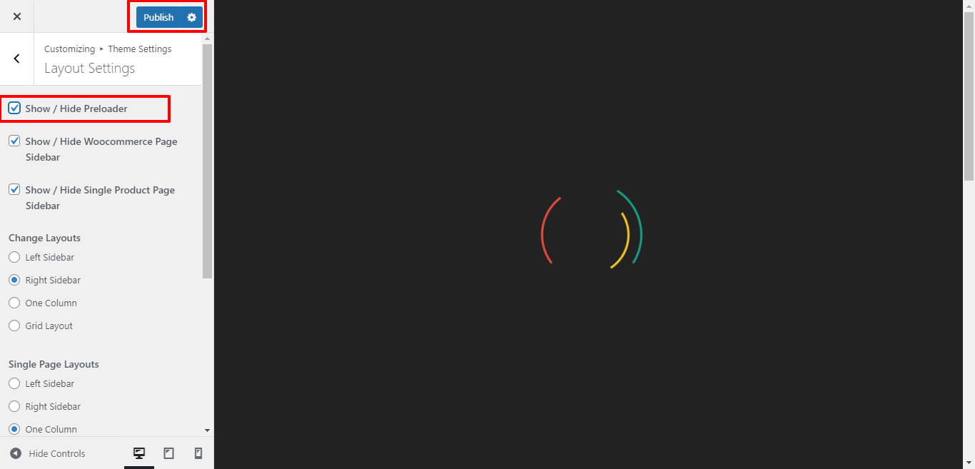 Here You can click the checkebox if you want to Enable / Disable preloader.
