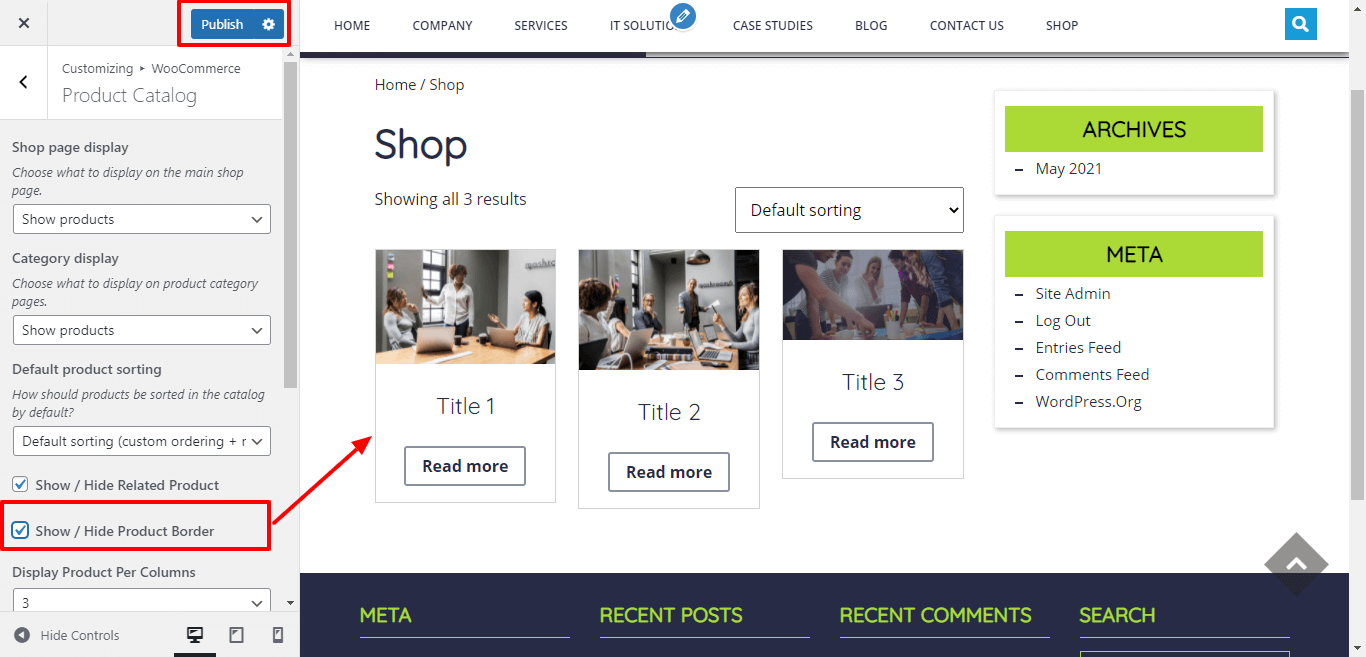 Here You have an option to Show / Hide border of product.