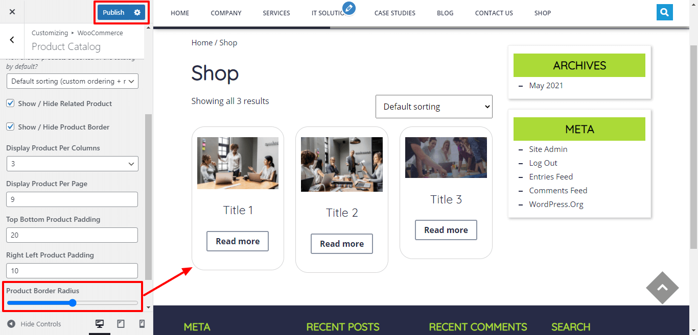Here You have an option to give border radius to product.
