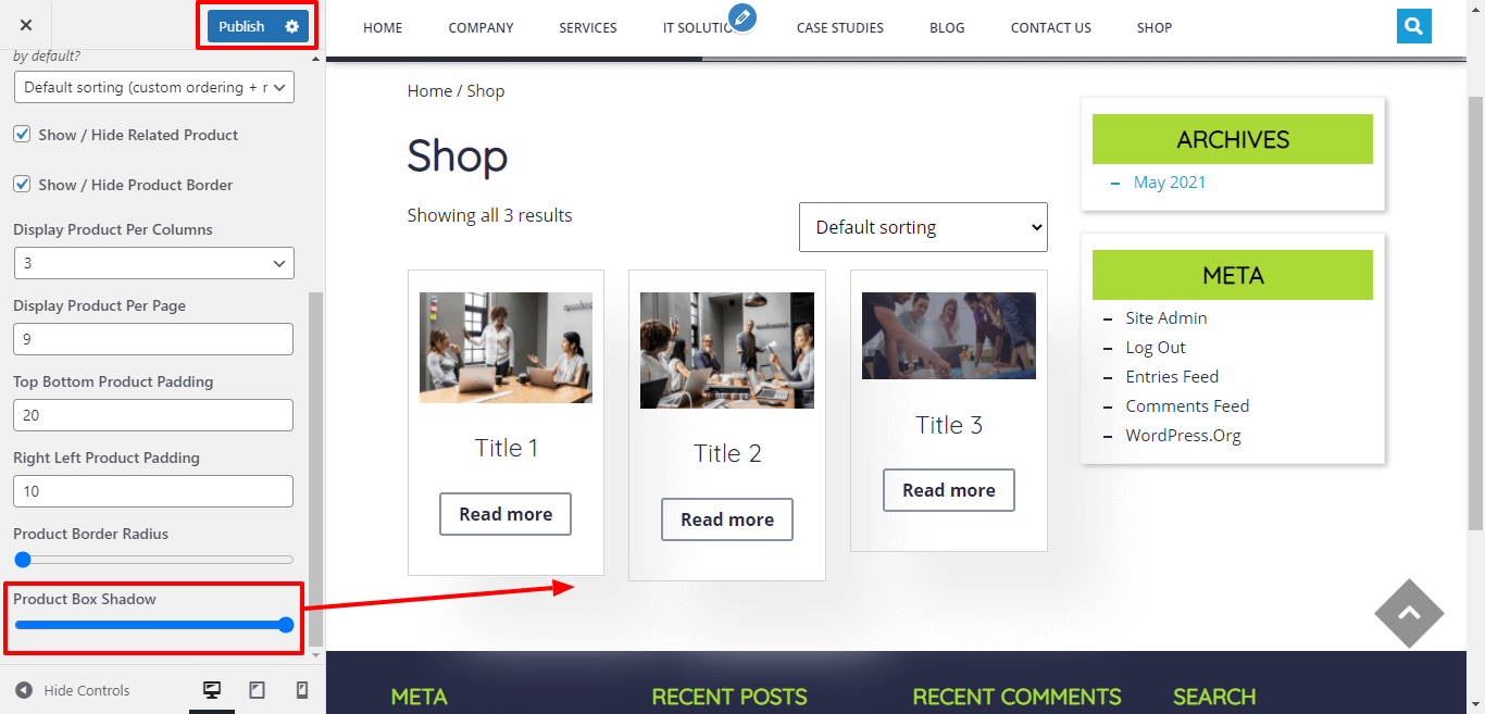 Here You have an option to give box shadow to the product.
