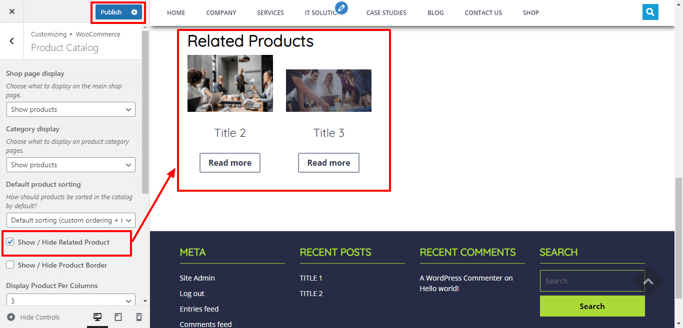 Here You have an option to Enable / Disable Feature Related product of shop page by click on checkbox.
