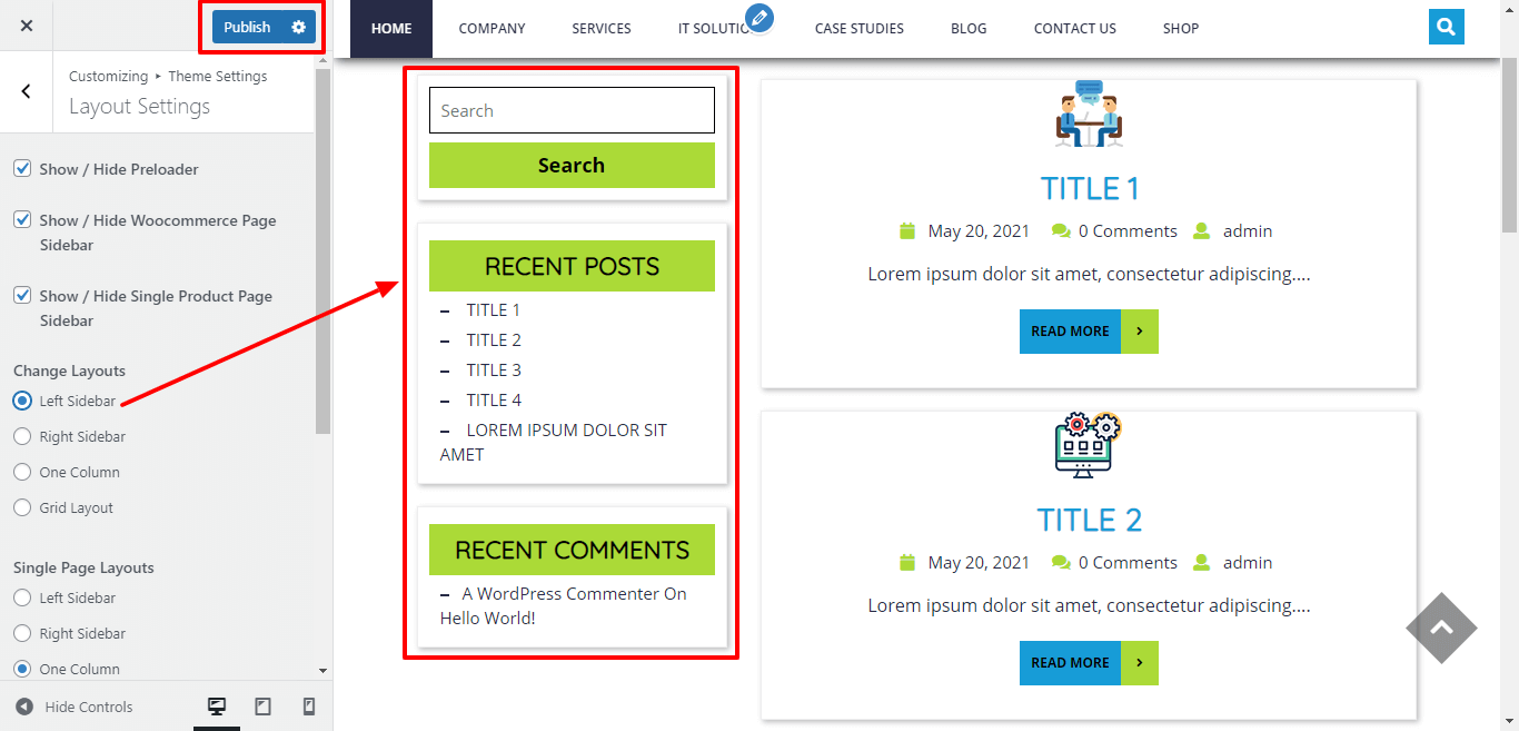 Go to Appearance >> Customize >> Themes Settings >> Layout Settings