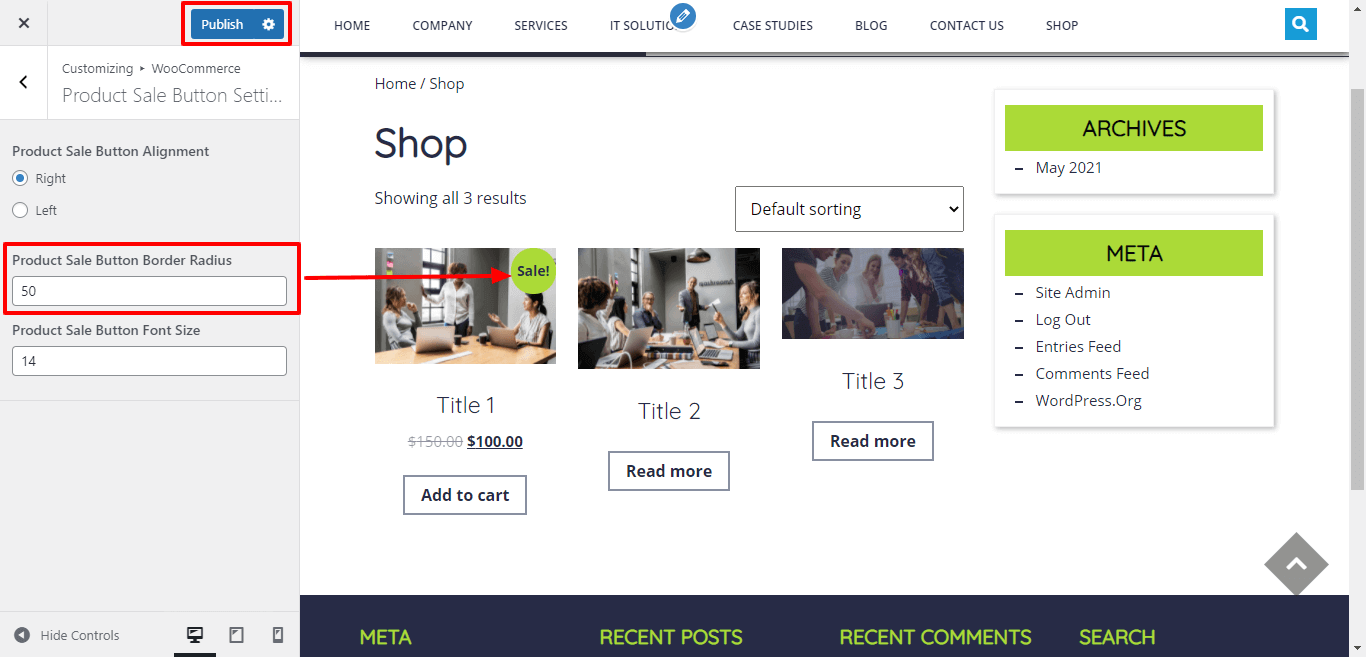 Here You have an option to add border radius for product sale button of the theme.