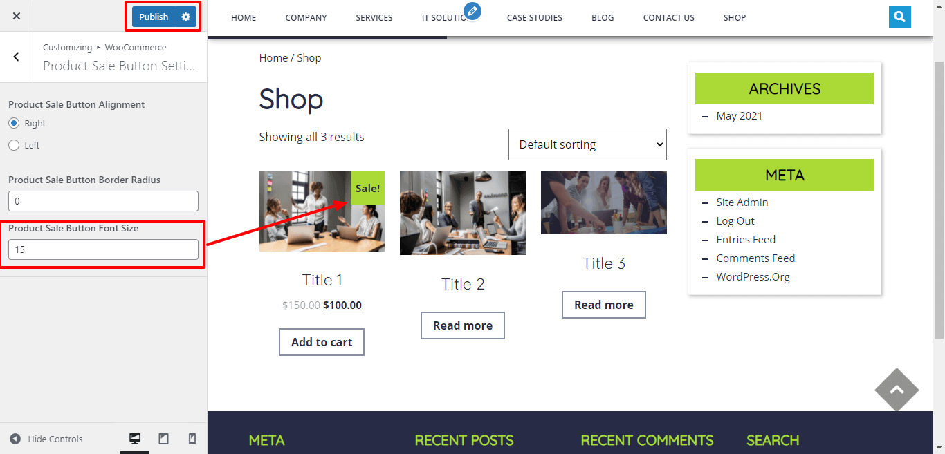 Here You have an option to add sale button font size of the theme.