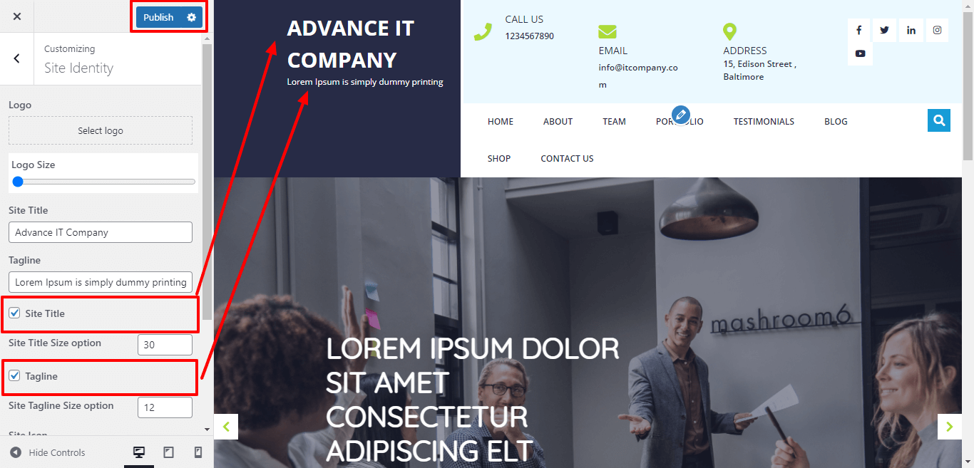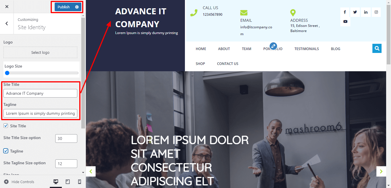 Here you can add you Site title and tagline for the theme
