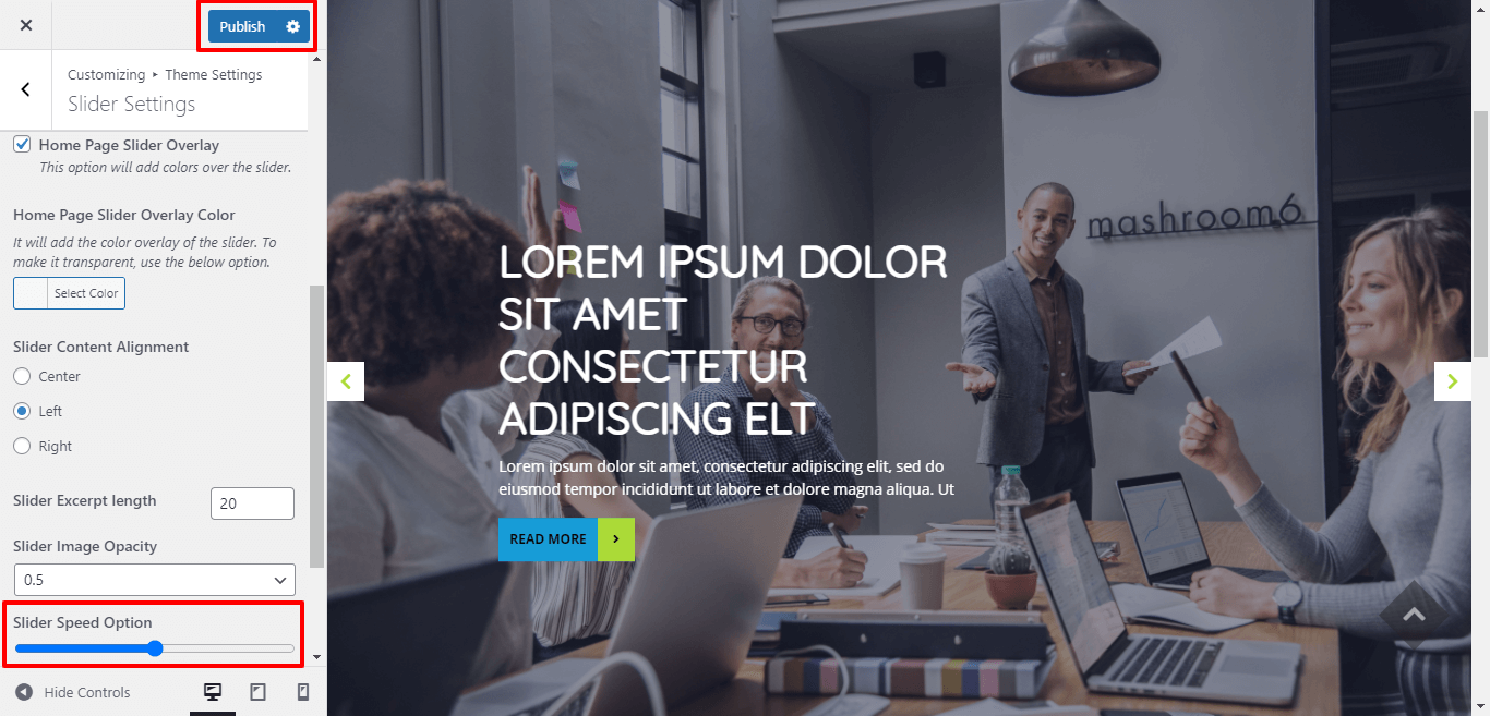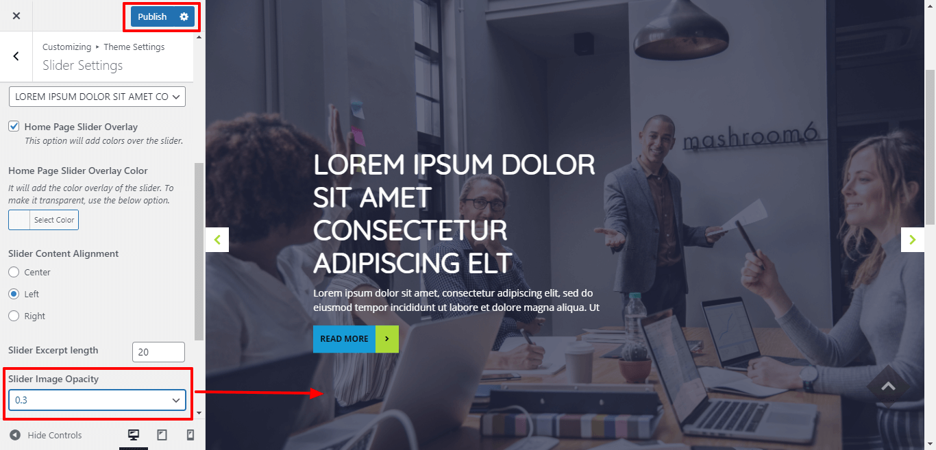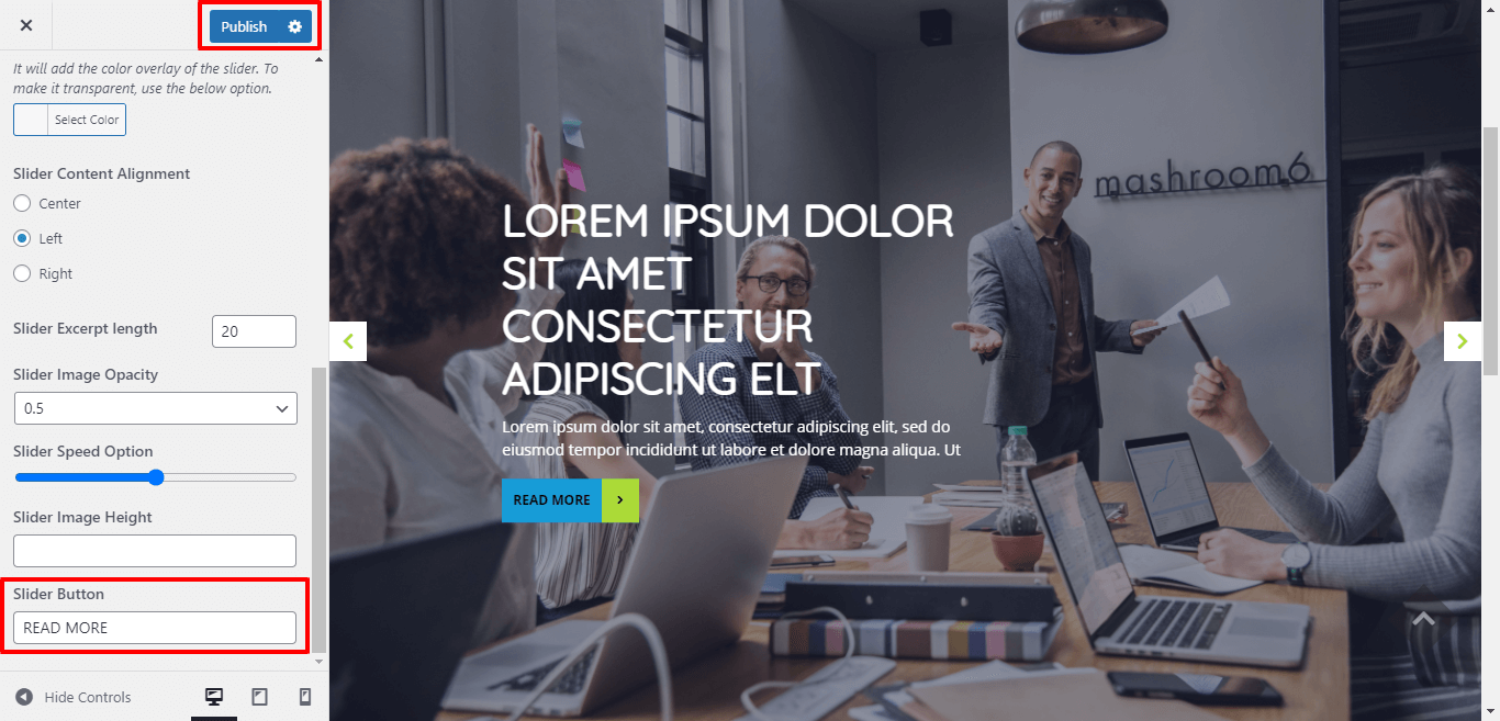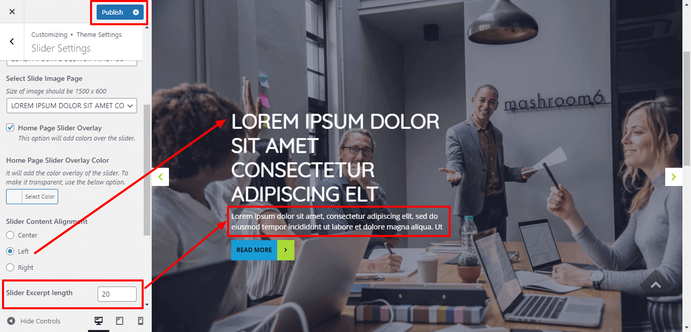 You can select the slider content alignment and select the slider excerpt length for slider content.