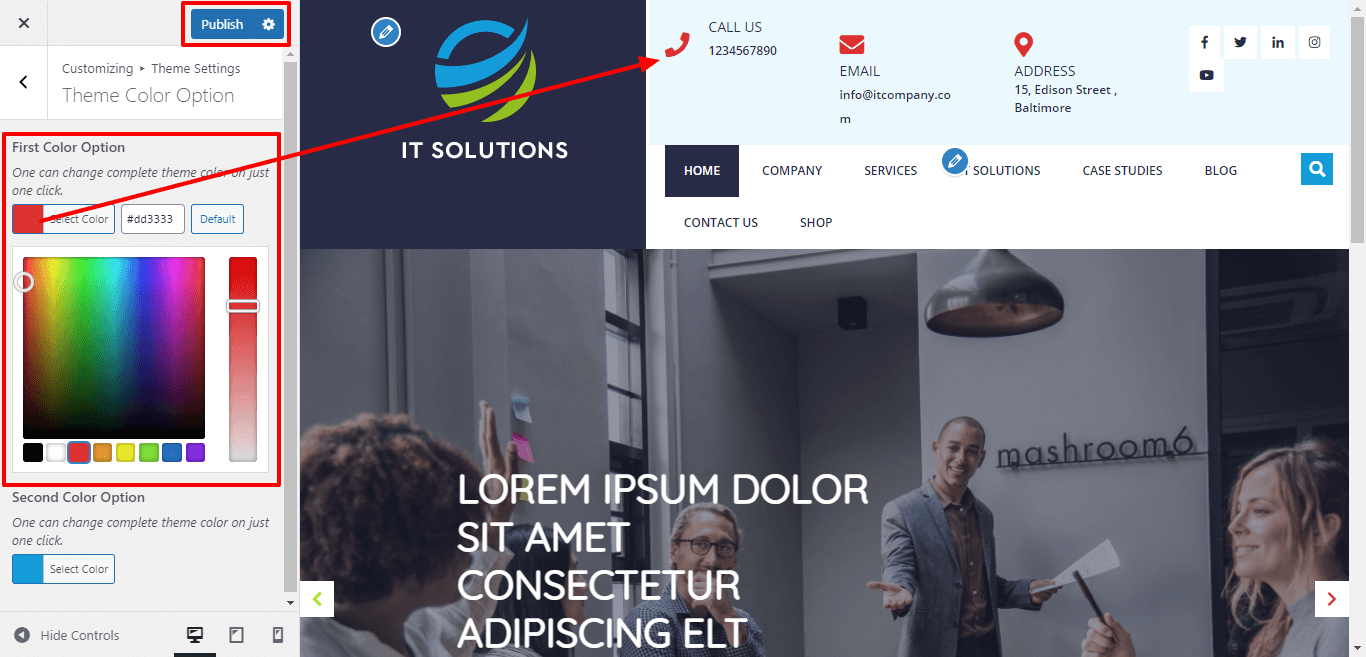 In order to proceed with theme color option, follow the below steps.
