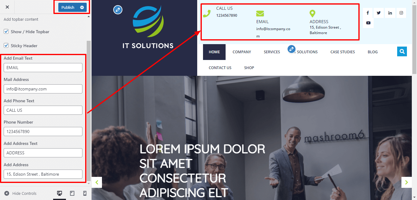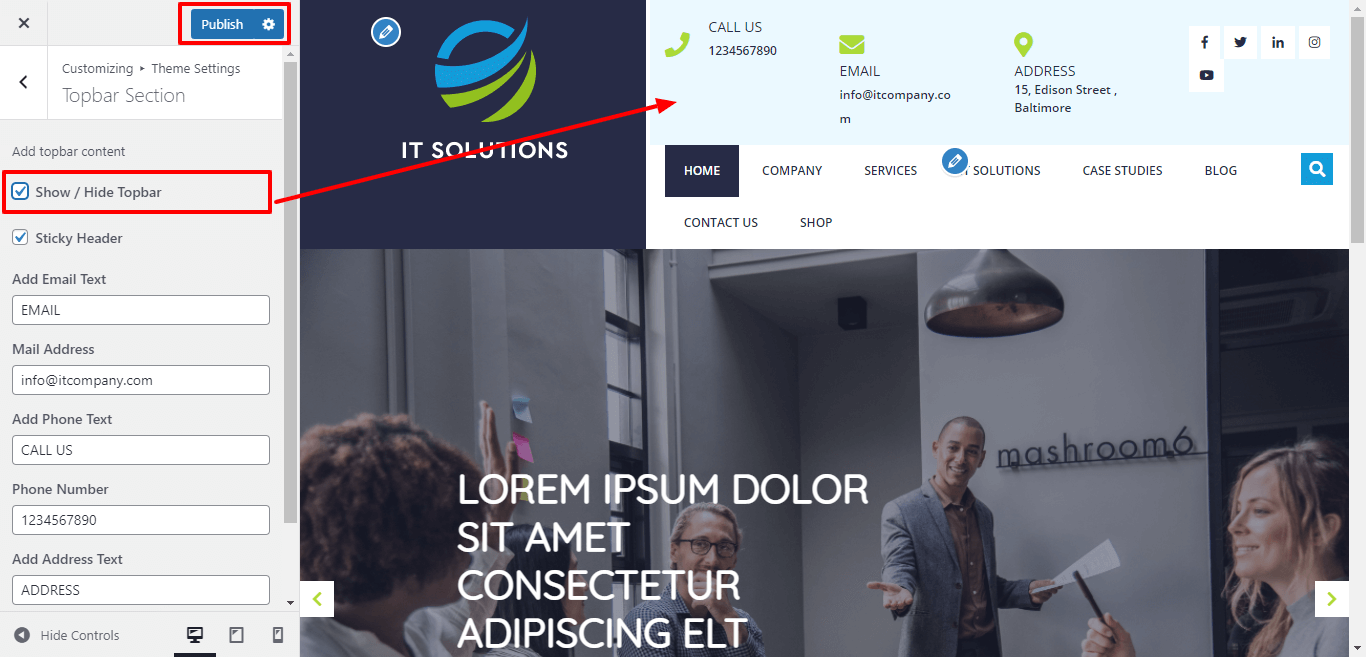 In order to setup Topbar section, follow the below steps.