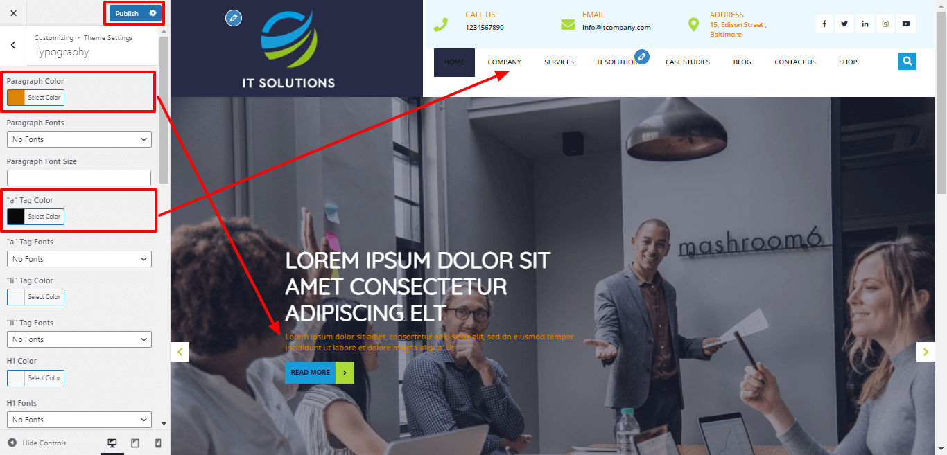 1. Color: Here you can change the colors of all Paragraph, 'a' tag, 'li' tag, H1, H2, H3, H4, H5 and H6 respectively.