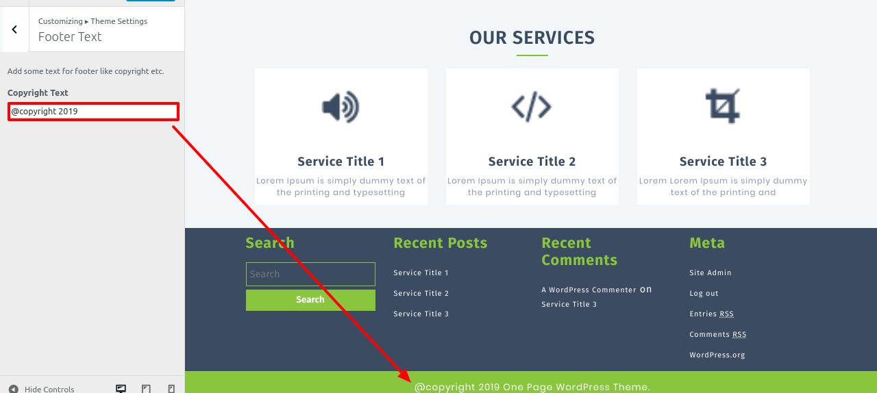 Go to Appearance >> Customize >> Themes Settings >> Footer Text Section