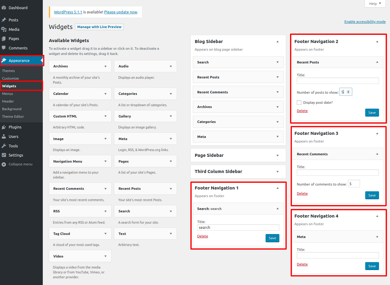 Many WordPress themes support multiple sidebars also known as widget ready areas like left sidebar, right sidebar, one column and grid layout.