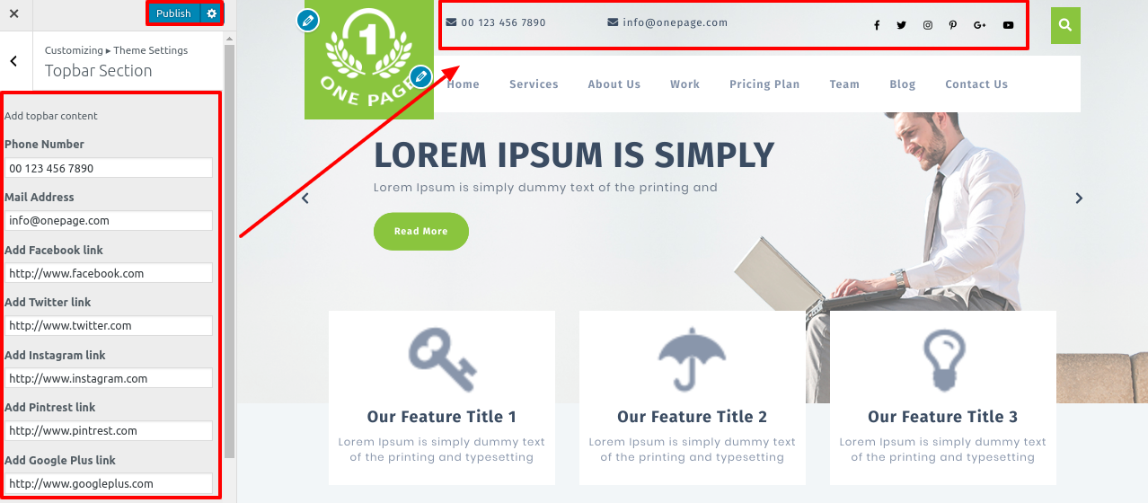 Go to Appearance >> Customize >> Themes Settings >> Features Settings