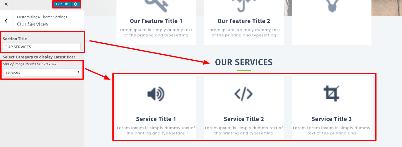 Go to Appearance >> Customize >> Theme Settings >>Our Services