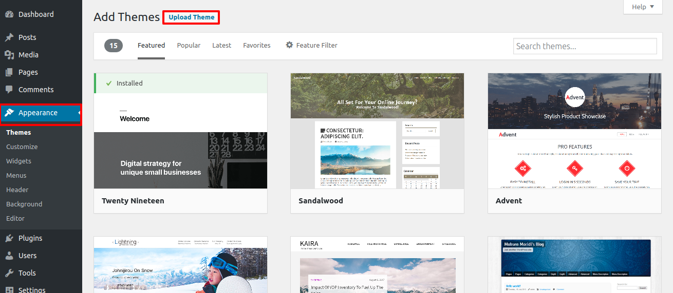 Remember you must unzip the folders before you upload a theme using FTP. Once you have uploaded the theme, you would need to go to your admin area and click on Appearance >> Themes.