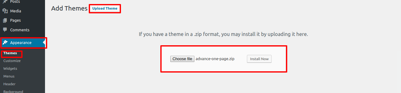 advance-one-page.zip - this folder content all the necessary files for the theme.