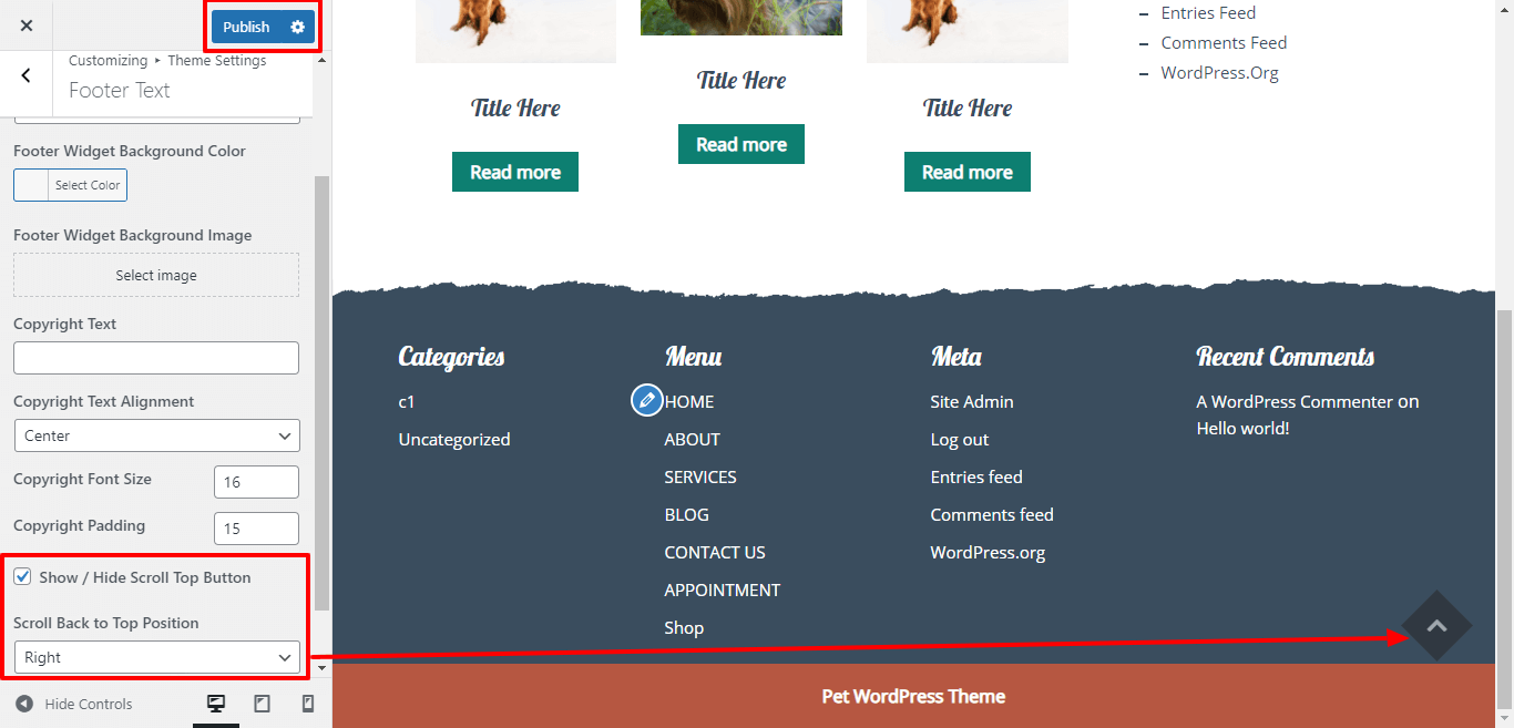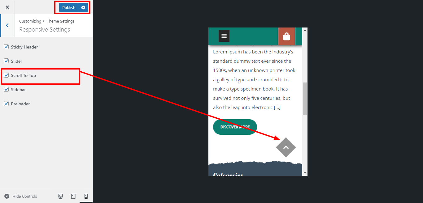 For show or hide Scroll Top Button, click twice on the checkbox and select the position for scroll top button.
