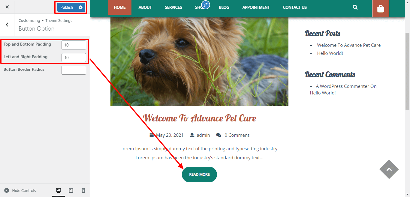 Here you can Give the Top-Bottom, Left-Right , Padding to the Button for the themes.