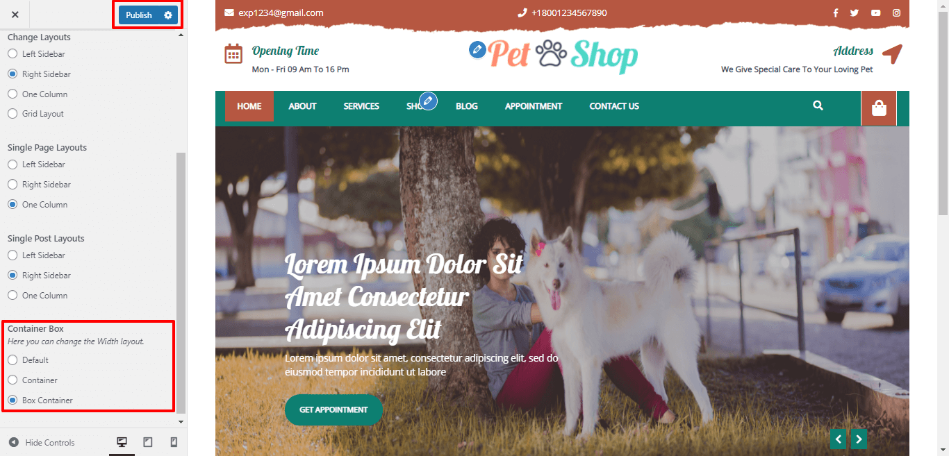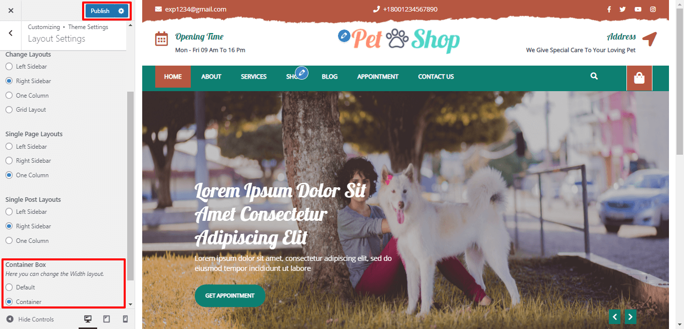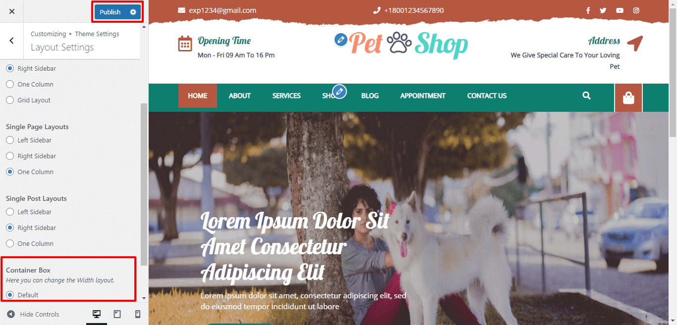 Go to Appearance >> Customize >> Themes Settings >> Layout Settings