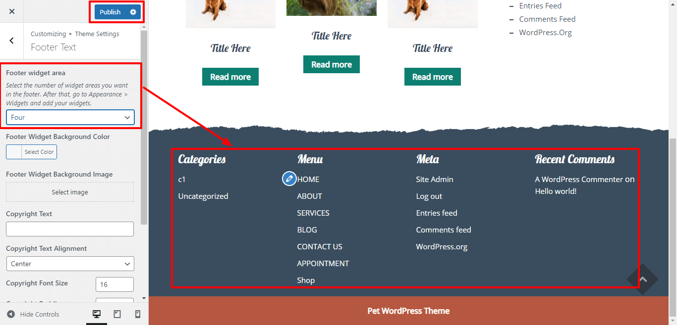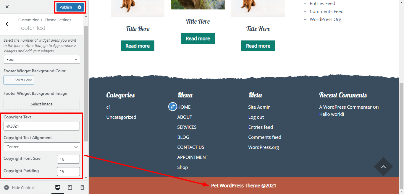 Here you can add the copyright text , copyright text alignment, copyright font size and padding for copyright text.
