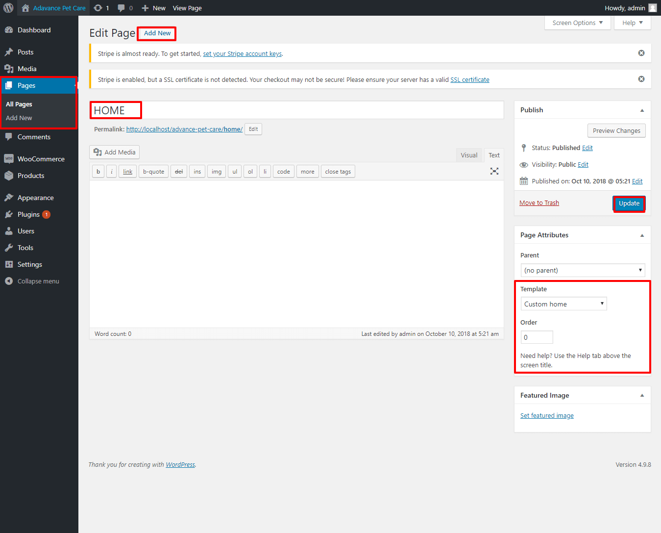 Label it "Home". Then select template "Custom Home" from template dropdown.