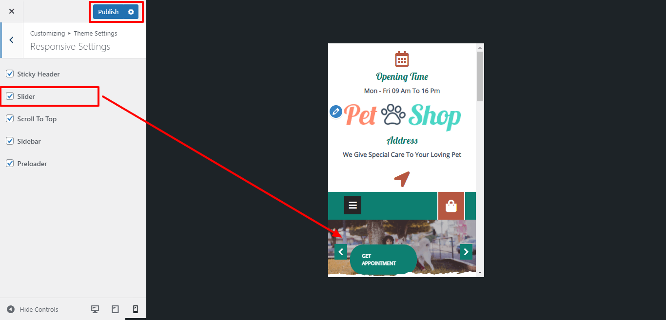 For Enable / Disable slider for mobile device or responsive media click on checkbox .