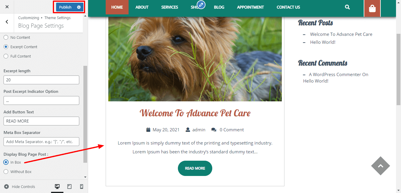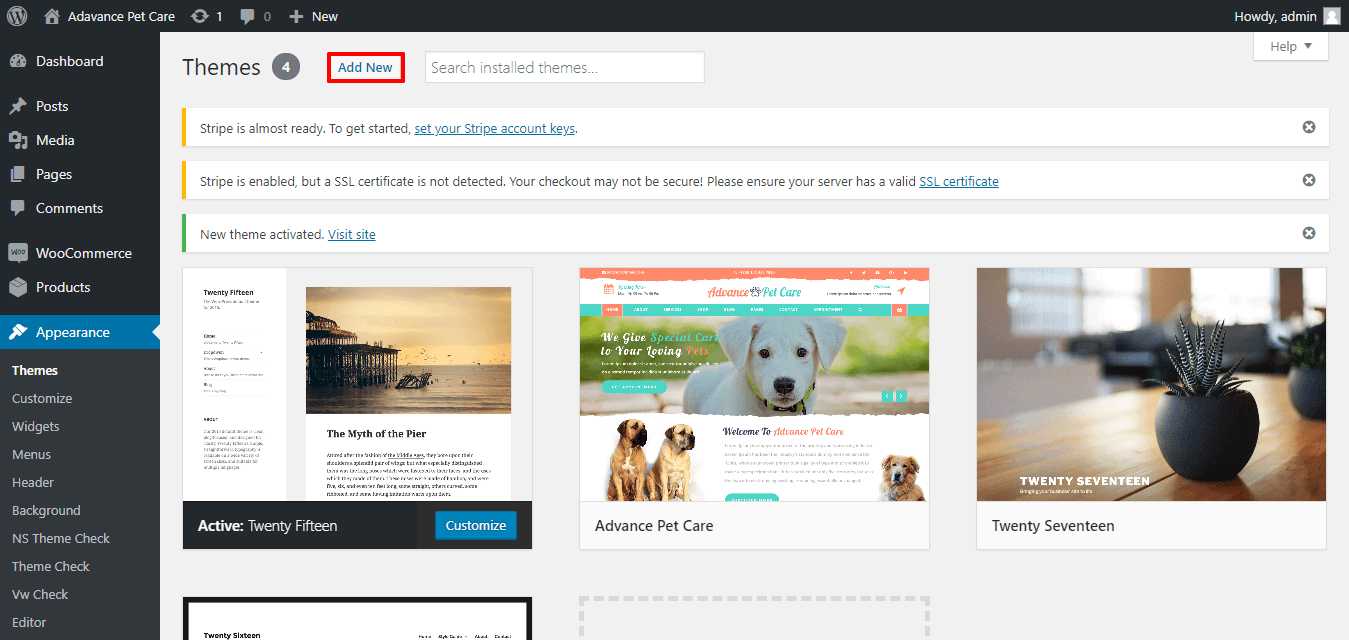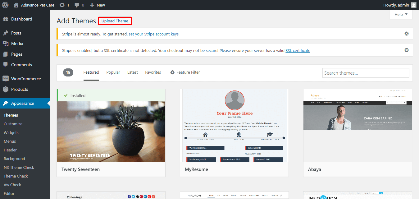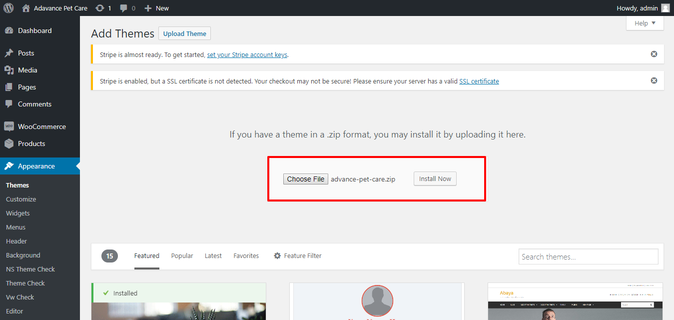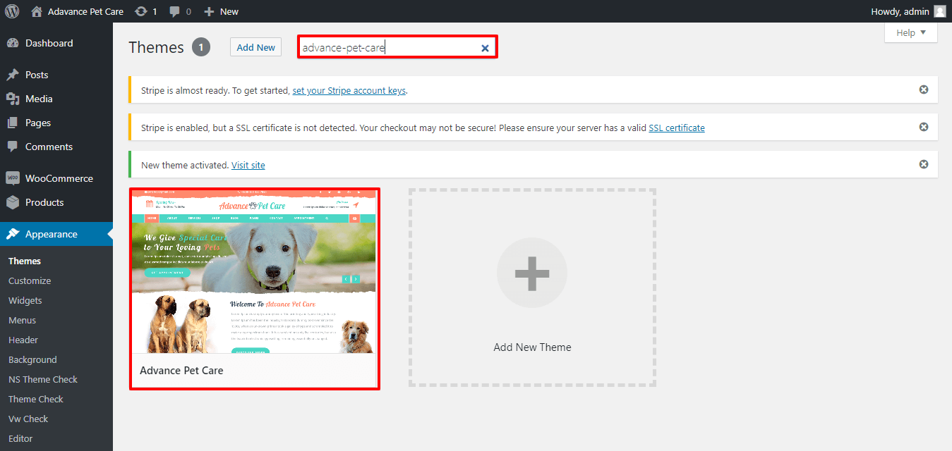 Based on your search, you will see a single theme or a list of themes that met your criteria. In our case, we searched for the theme Advance Pet Care.