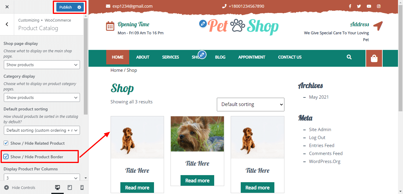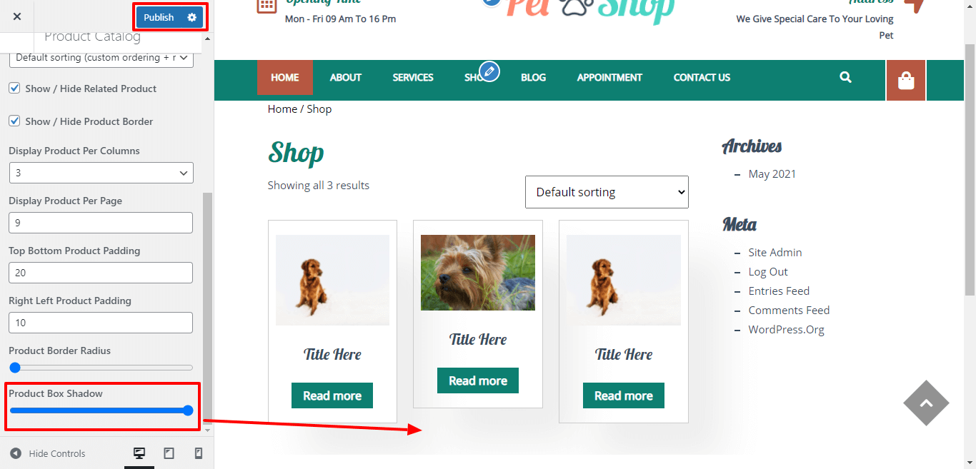 Here You have an option to Enable / Disable Feature Related product of shop page by click on checkbox.