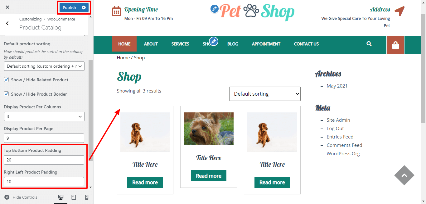 Here You have an option to top-bottom, left-right padding for product border and image.