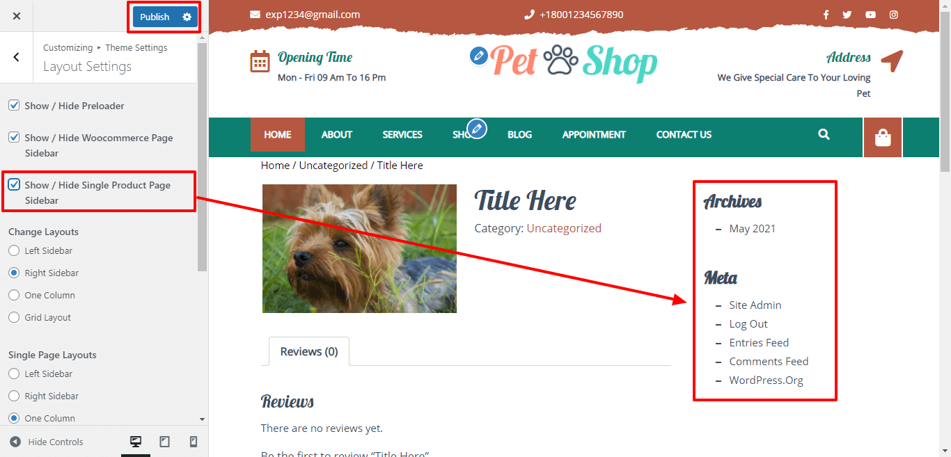 In Layout Settings, Here You can click the checkebox if you want to show / hide single product page sidebar.
