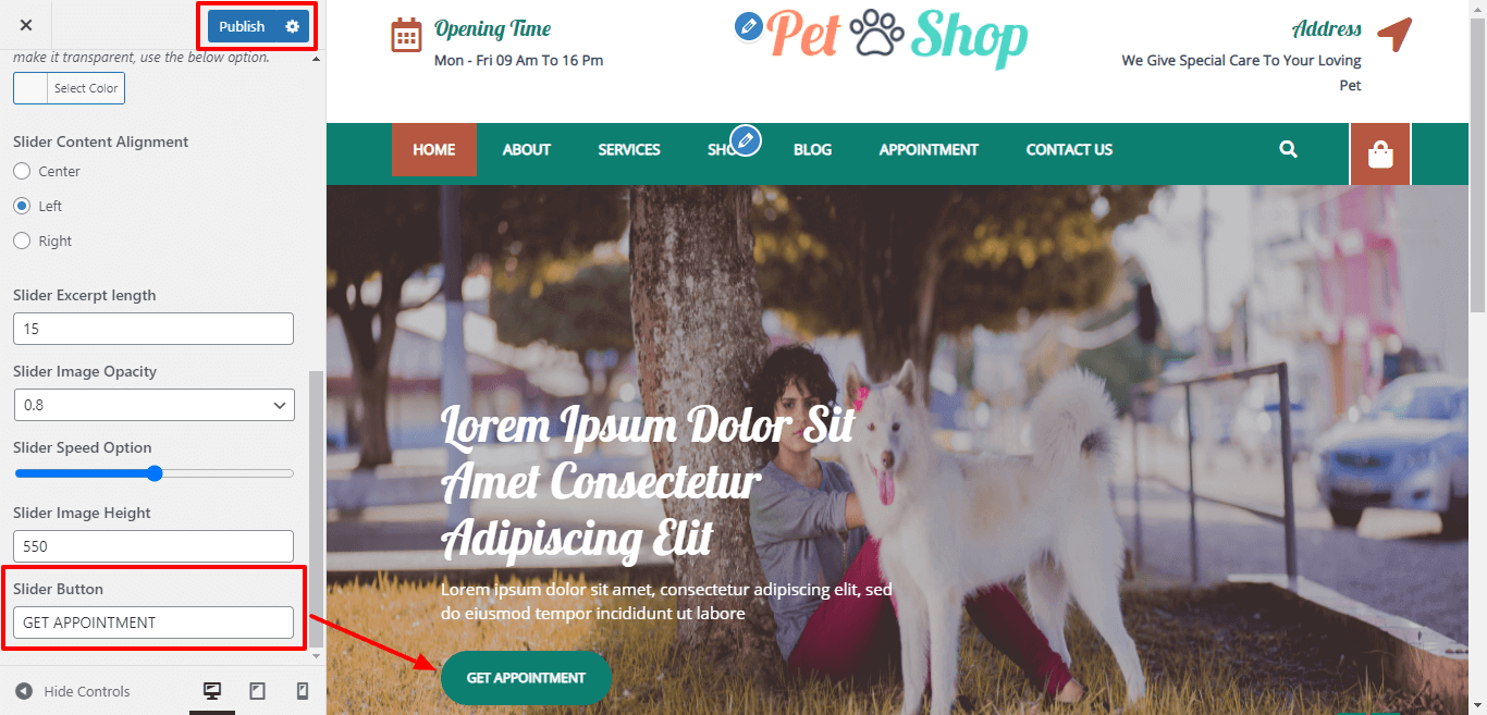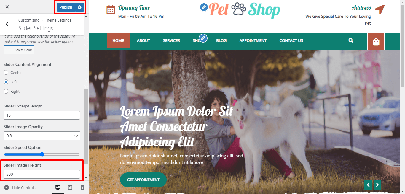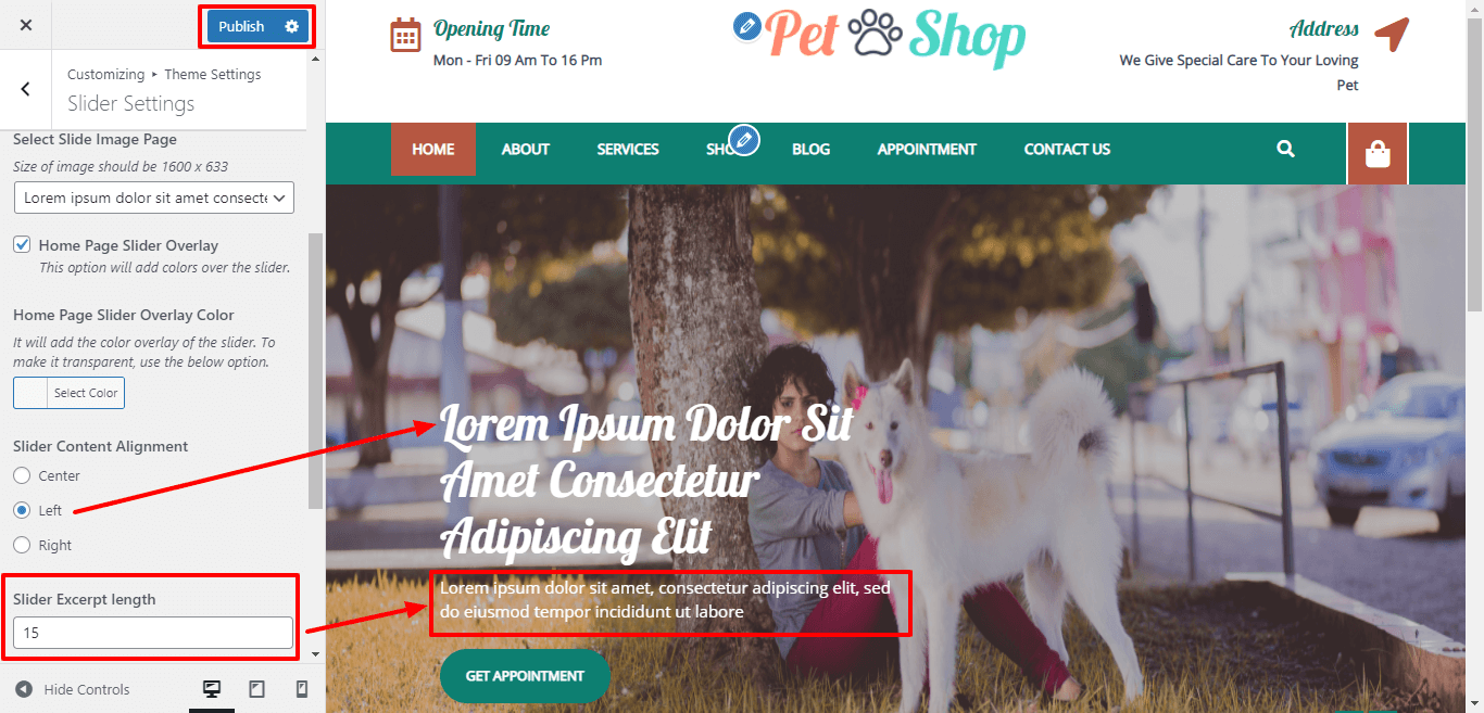 You can select the slider content alignment and select the slider excerpt length for slider content.