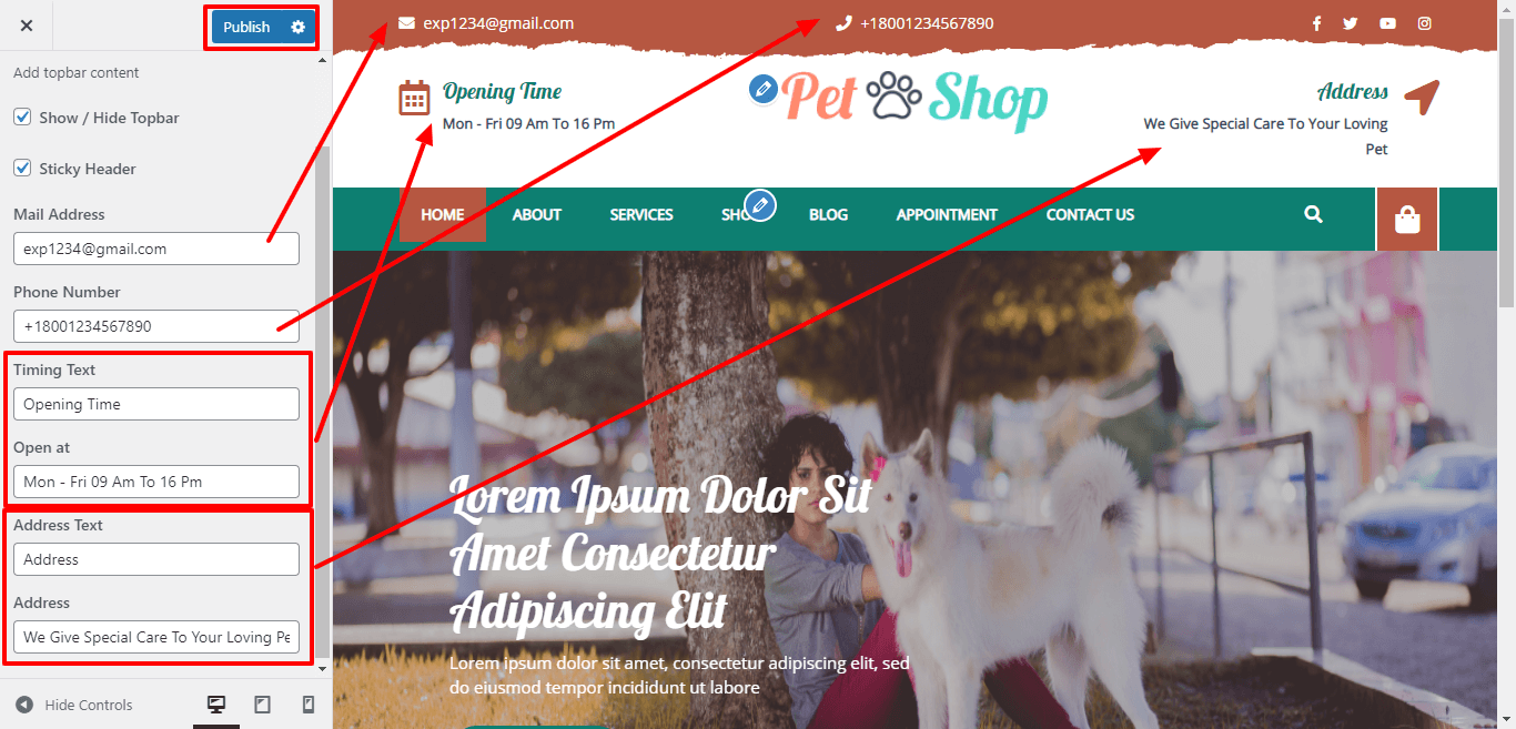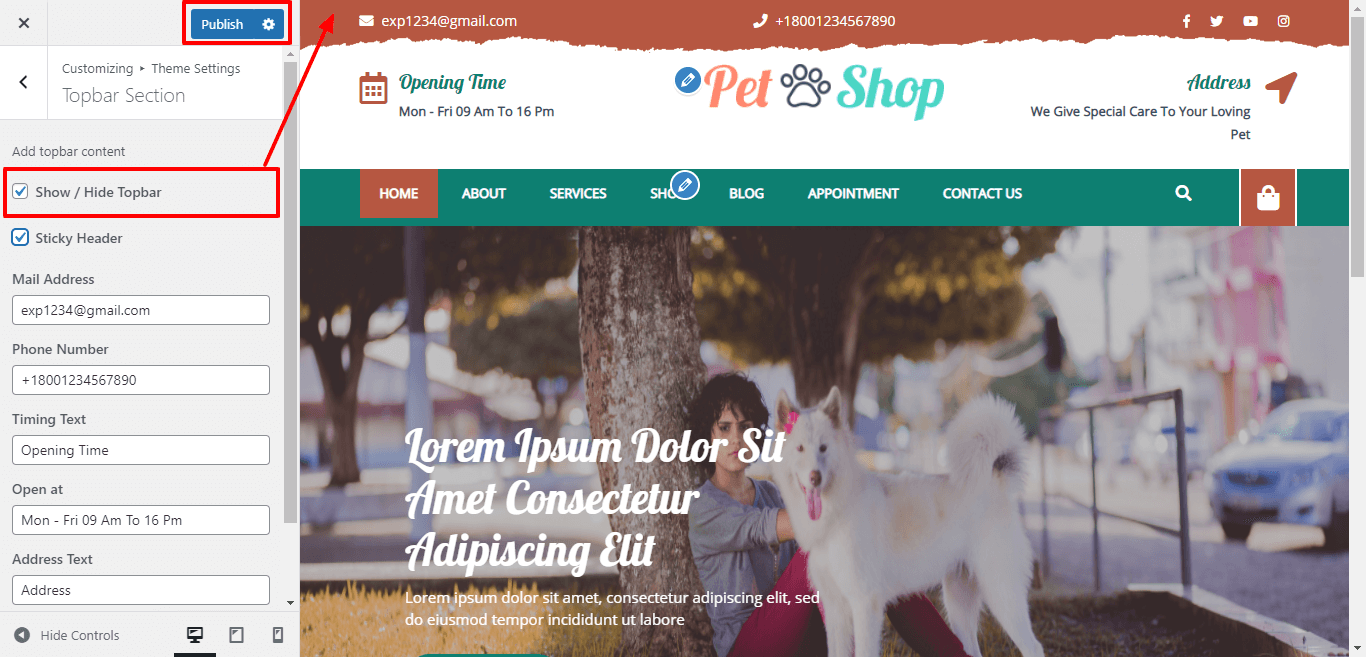 Go to Appearance >> Customize >> Theme Settings >> Topbar Section