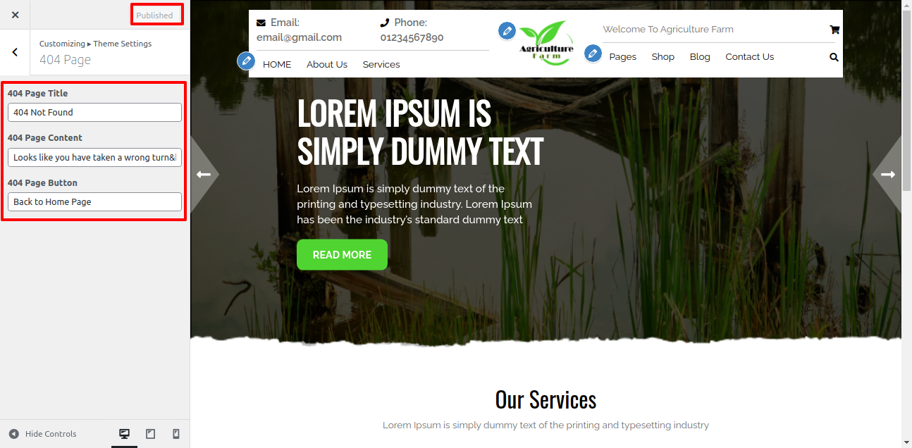 Go to Appearance >> Customize >> Themes Settings >> 404 Page