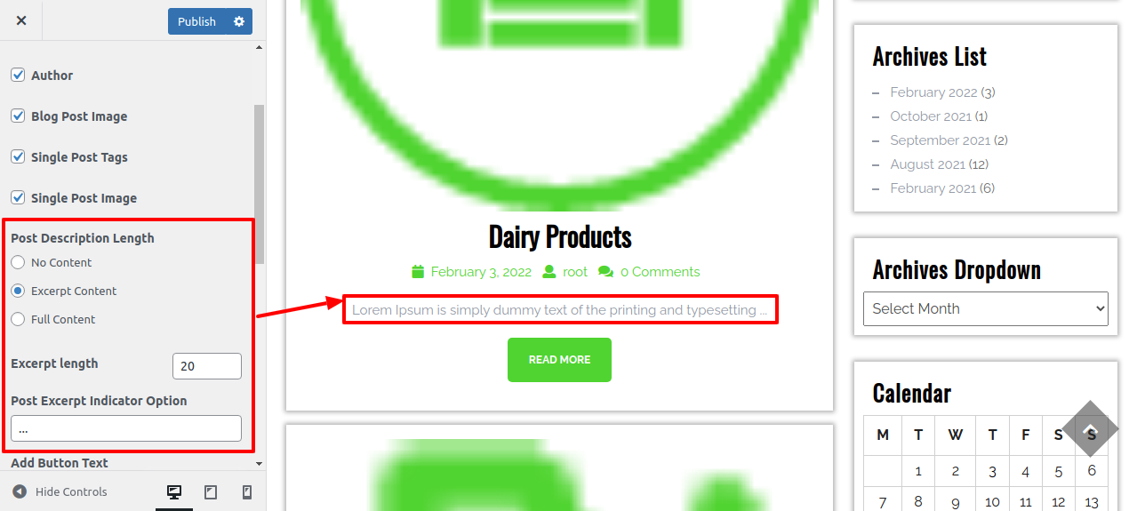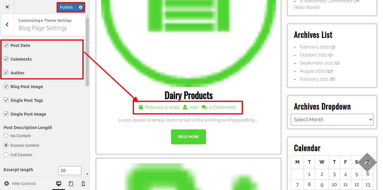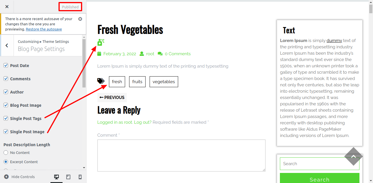 For show / hide single post tags and single post image, click on the checkbox for the theme.