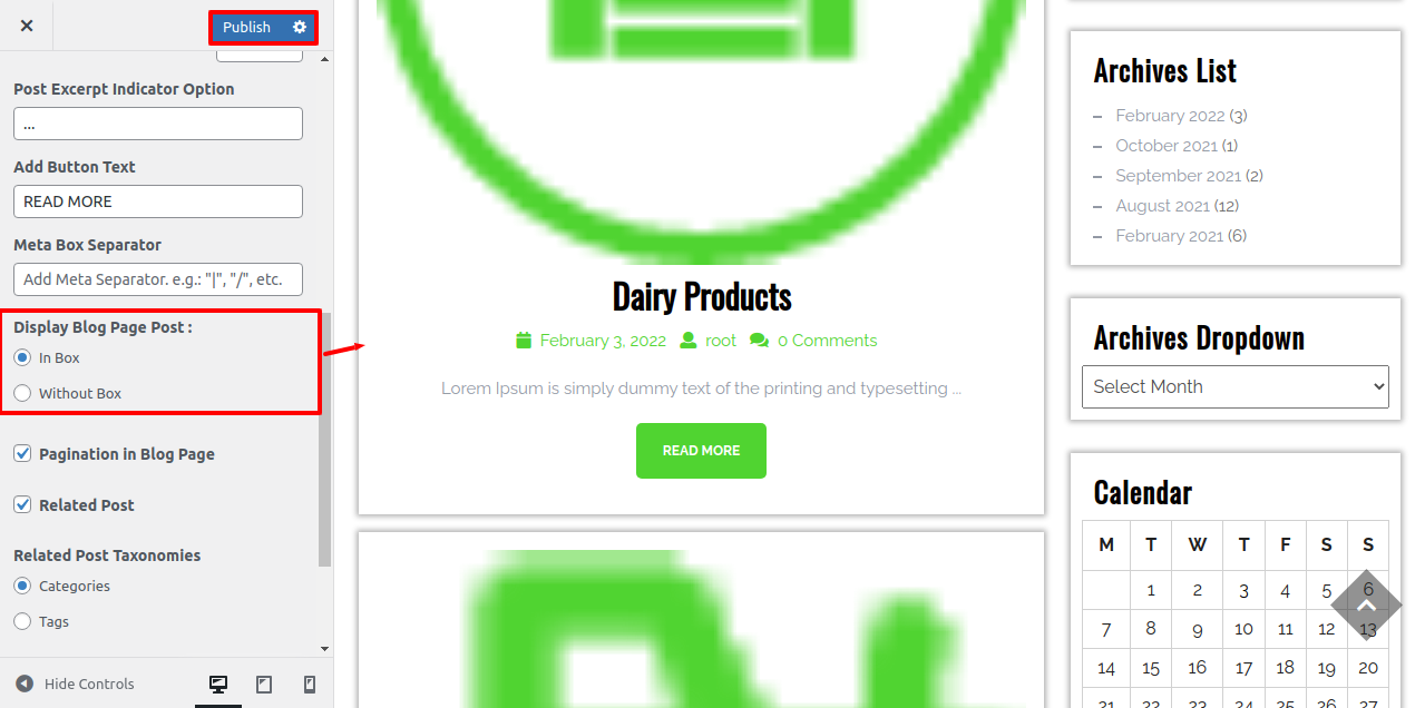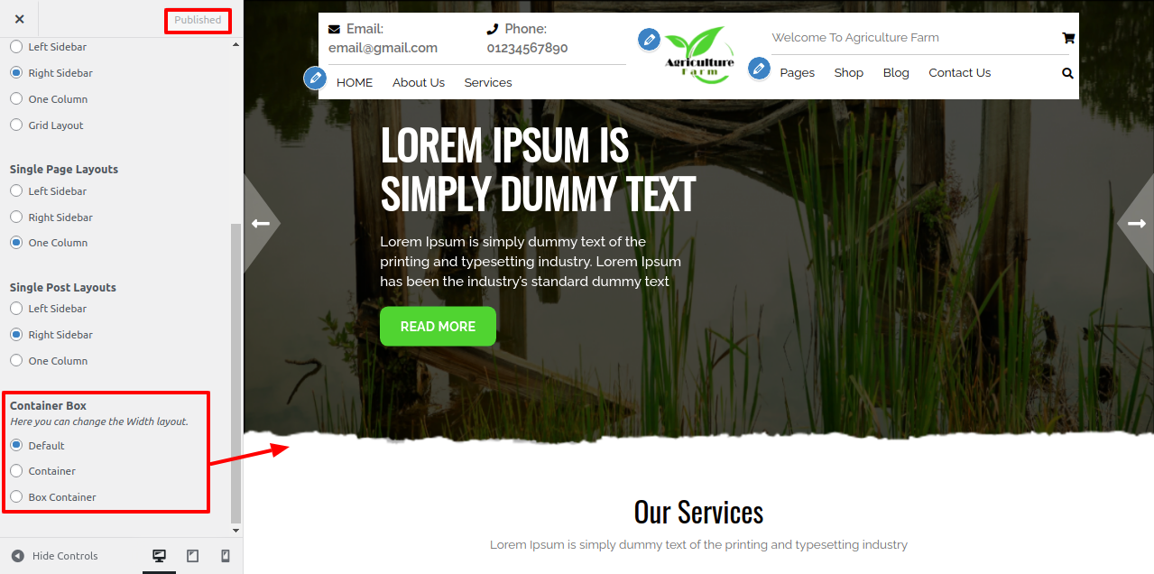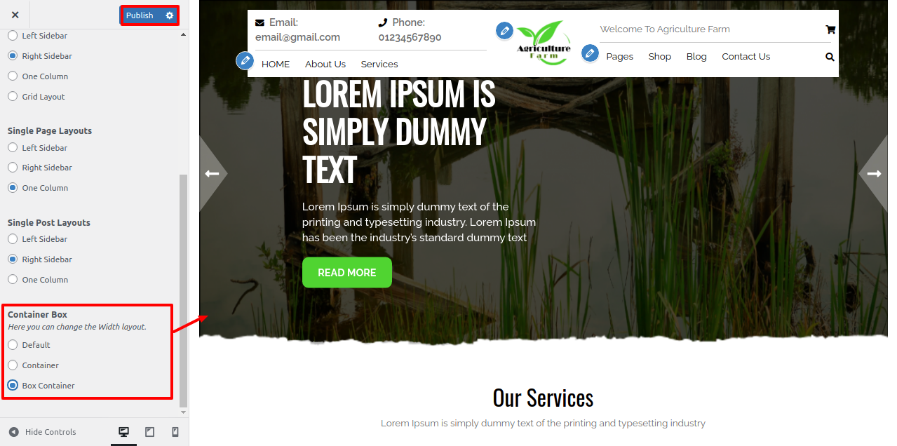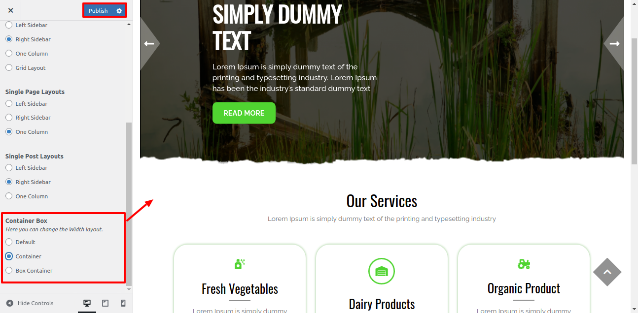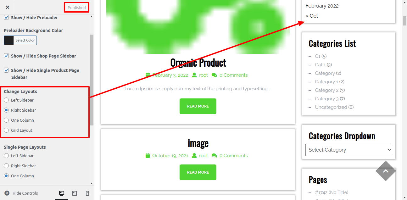 Go to Appearance >> Customize >> Themes Settings >> Layout Settings