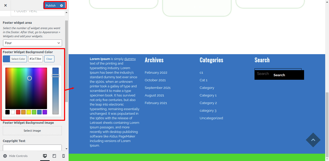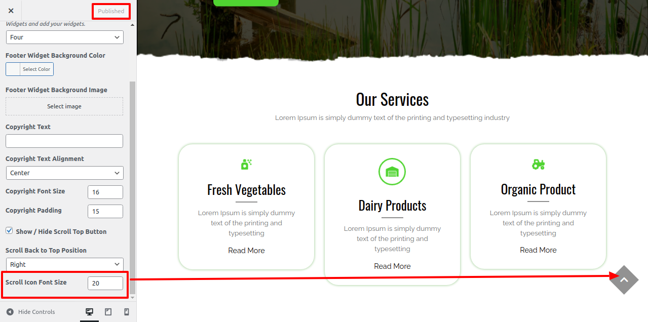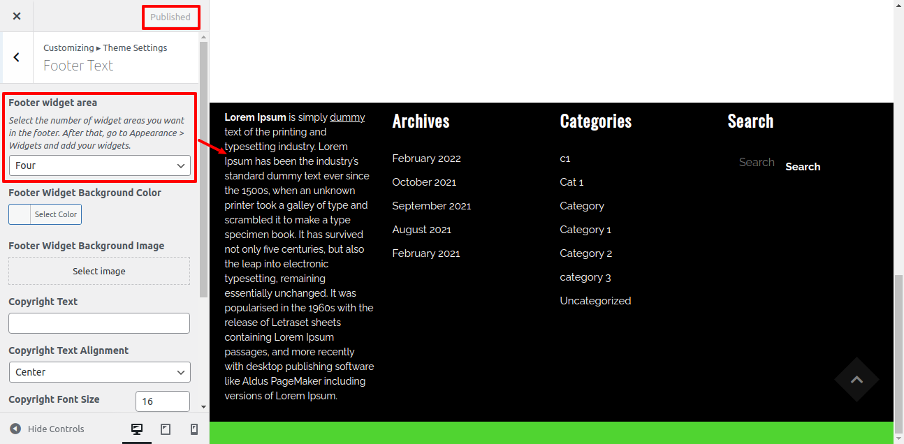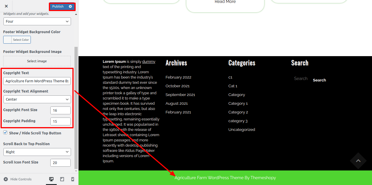 Here you can add the copyright text , copyright text alignment, copyright font size and padding for copyright text.