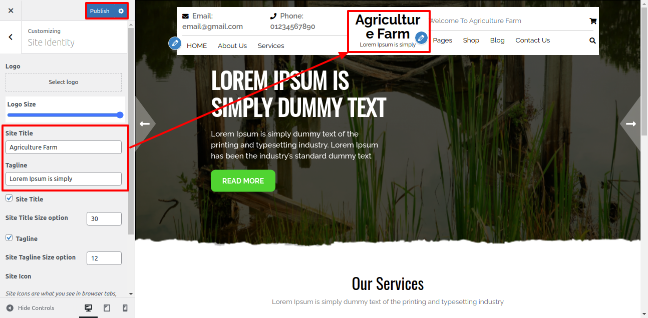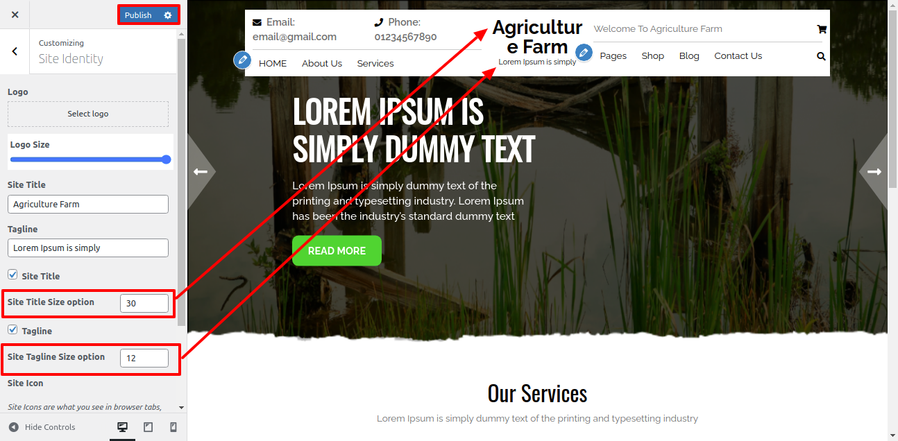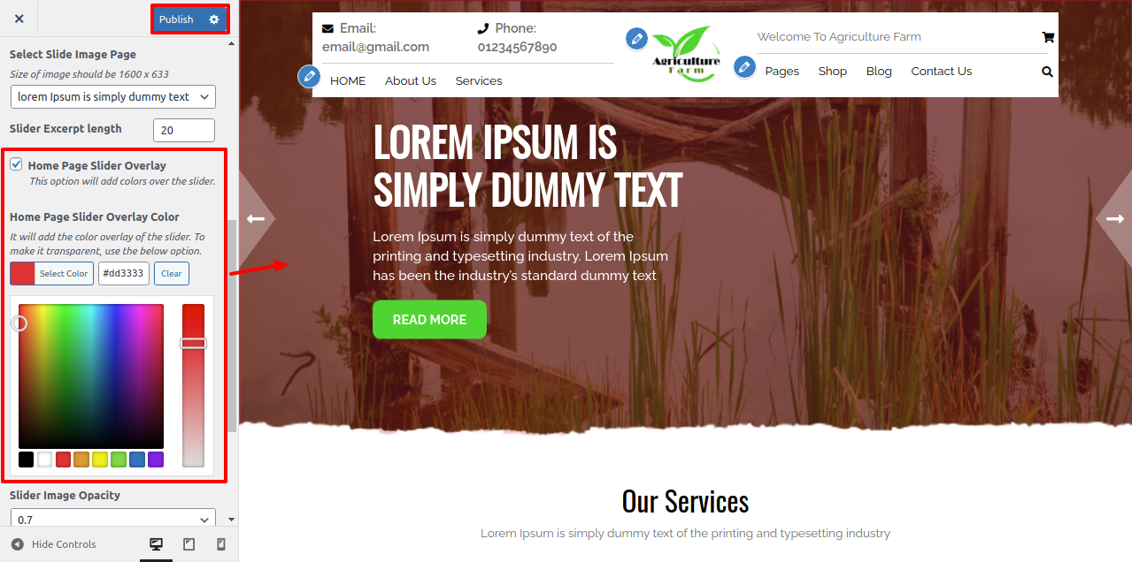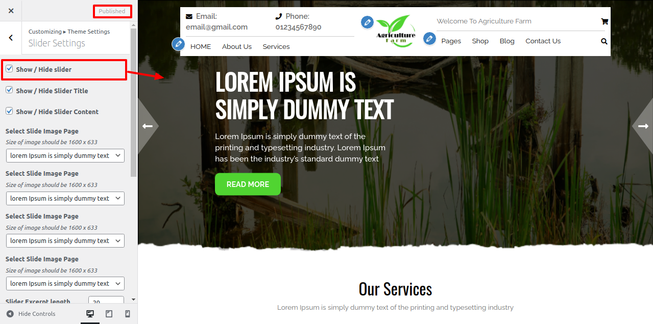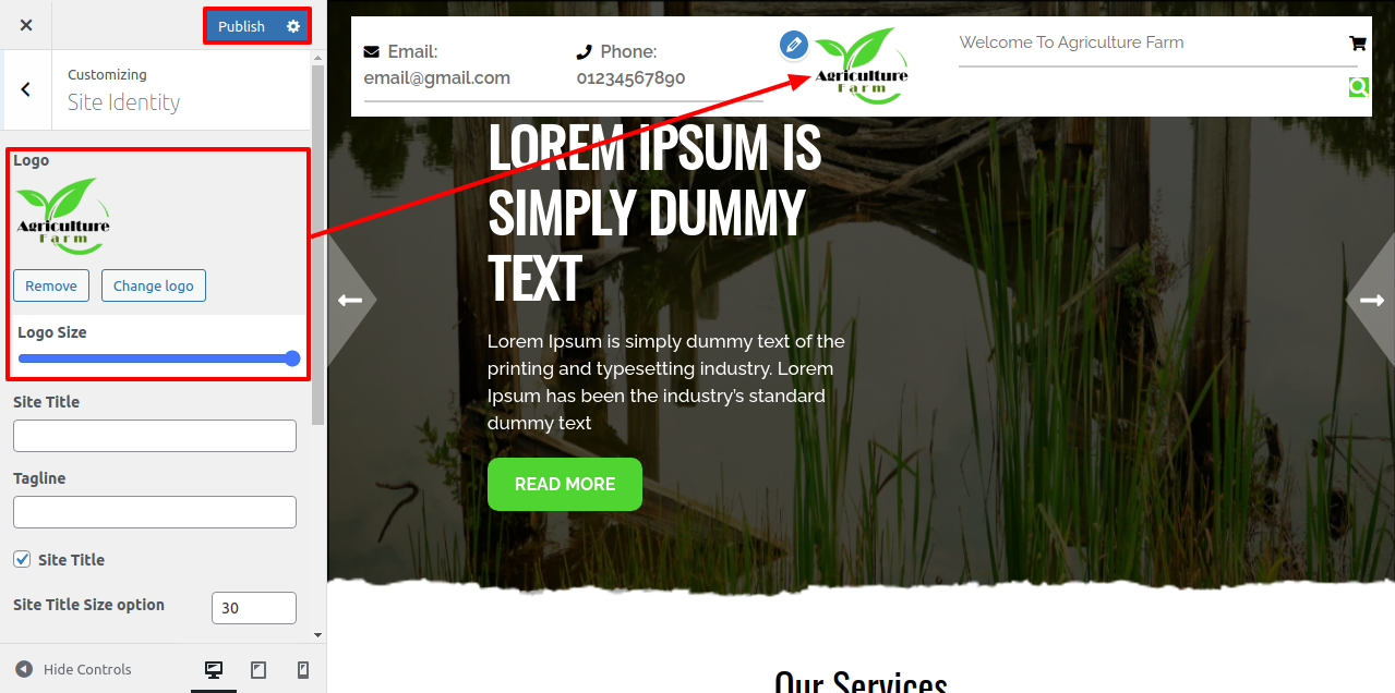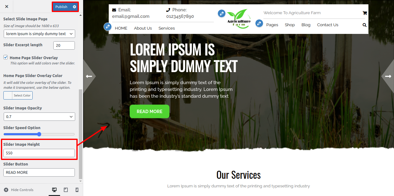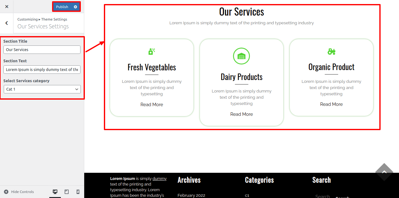 Go to Appearance >> Customize >> Theme Settings >> Our Services Settings