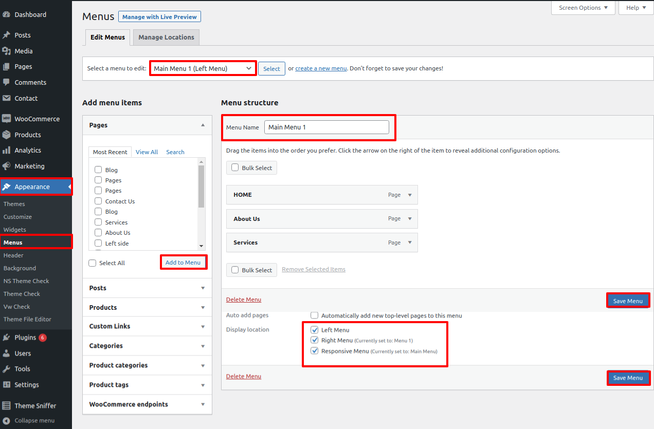 There are 3 checkboxes for left, right & responsive menu, select Left Menu, Right Menu & Responsive Menu respectively for primary menu.