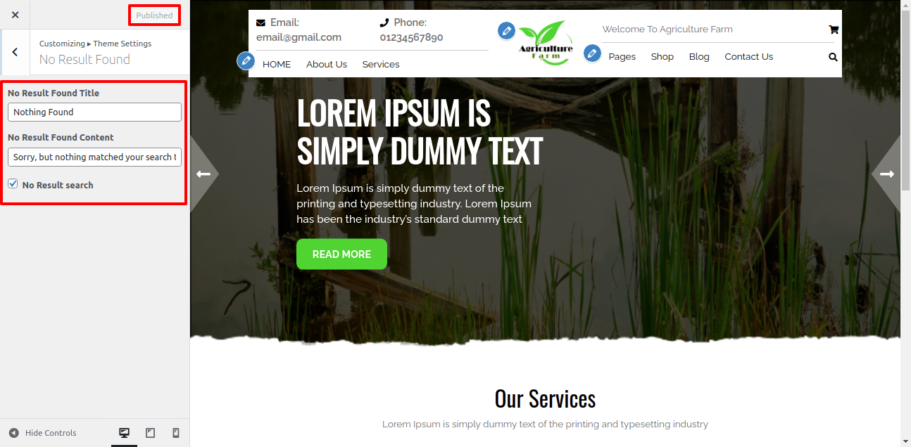 Go to Appearance >> Customize >> Themes Settings >> No Result Found