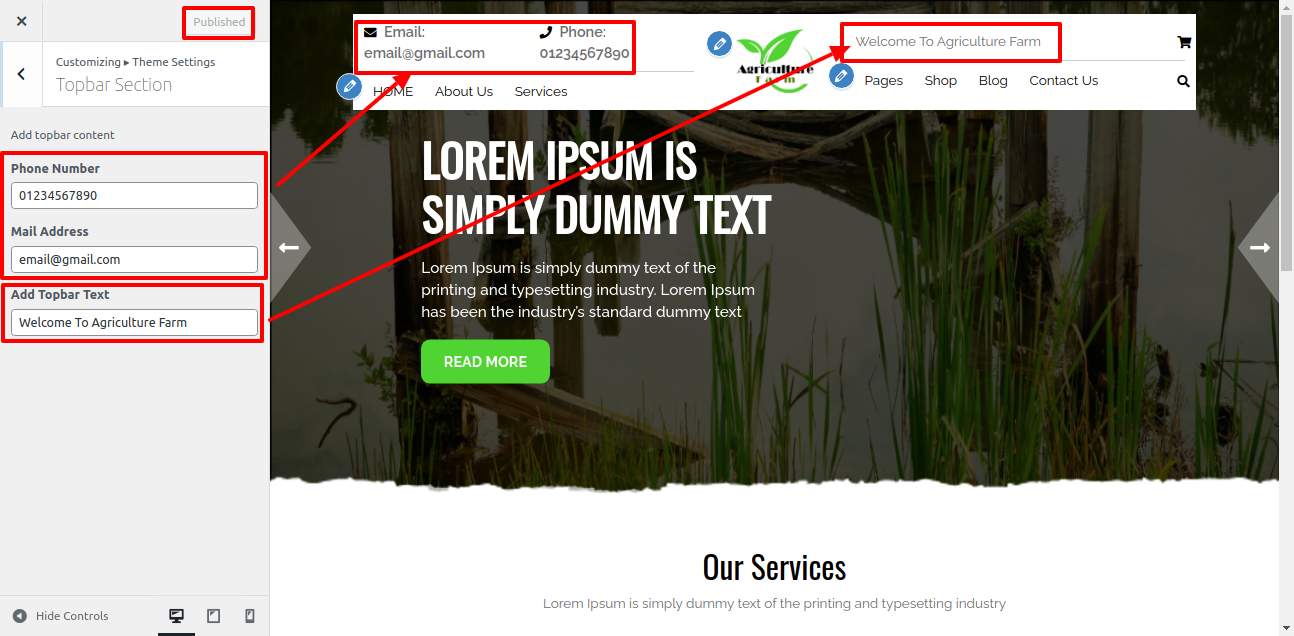 Go to Appearance >> Customize >> Theme Settings >> Topbar Section
