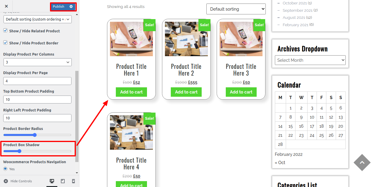 Here You have an option to add select the Number Of Product in one Row and single page.
