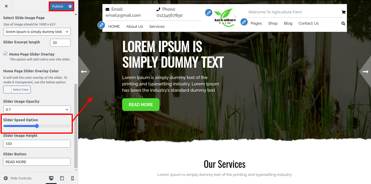Here You have an option to the speed of slider to load slider fast for the theme.