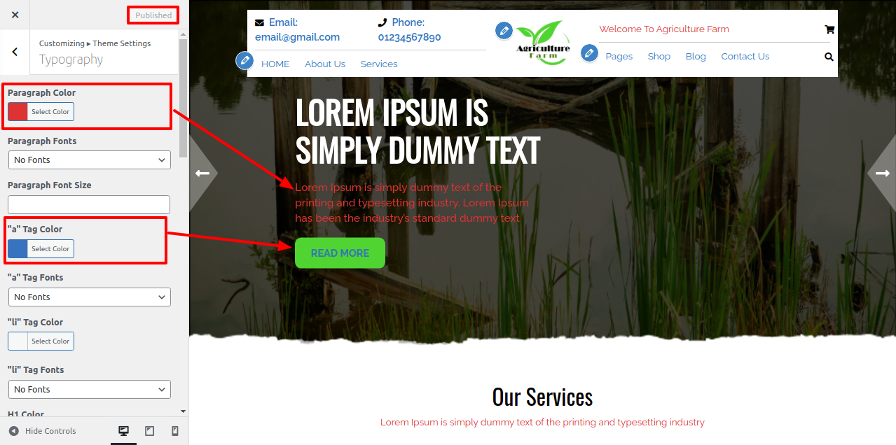 1. Color: Here you can change the colors of all Paragraph, 'a' tag, 'li' tag, H1, H2, H3, H4, H5 and H6 respectively.