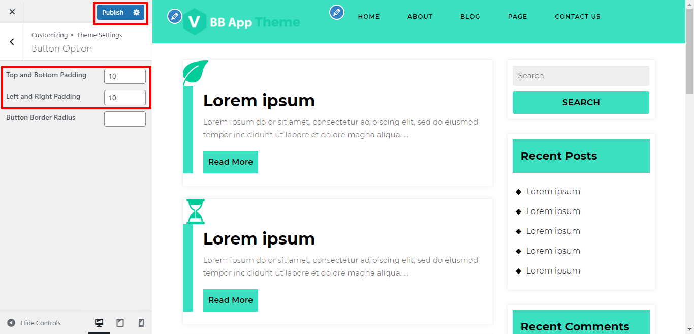 Here you can Give the Top-Bottom, Left-Right , Padding to the Button for the themes.
