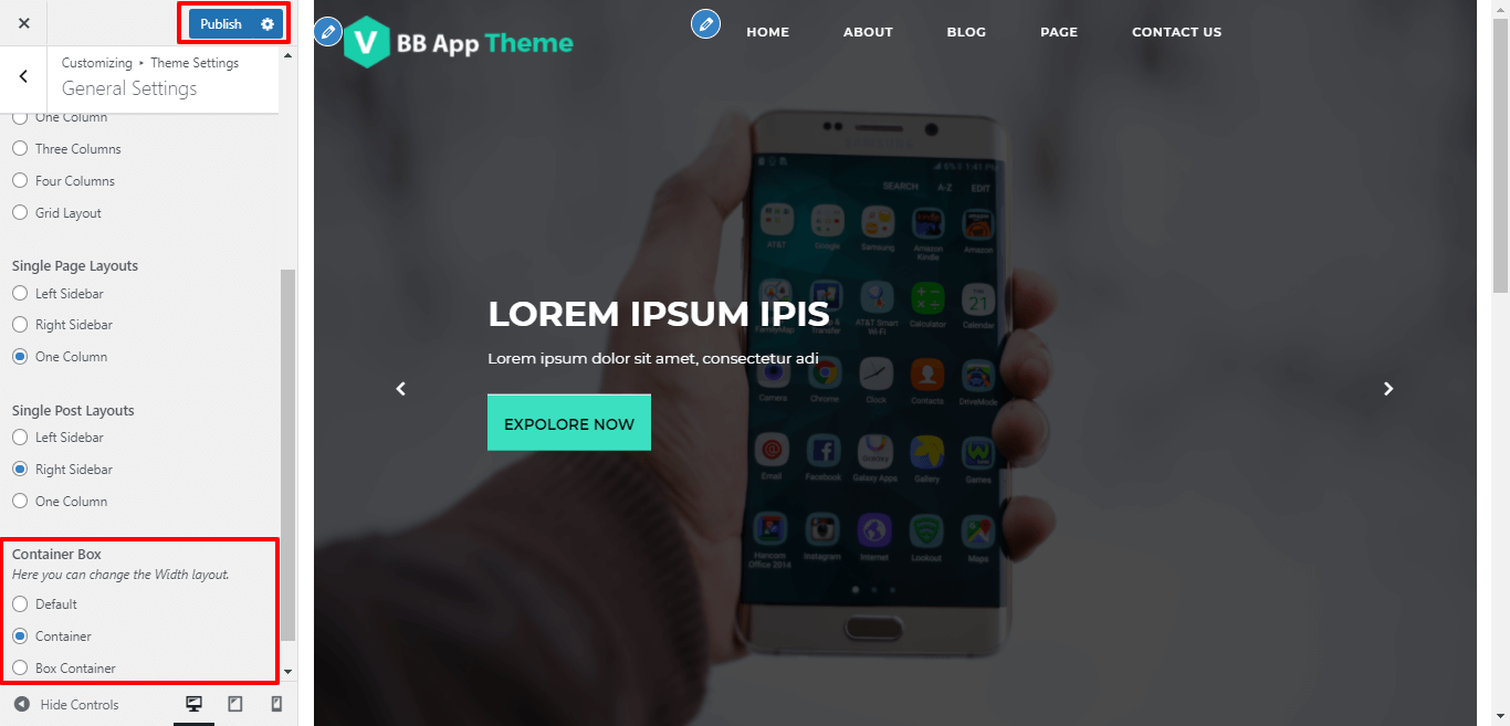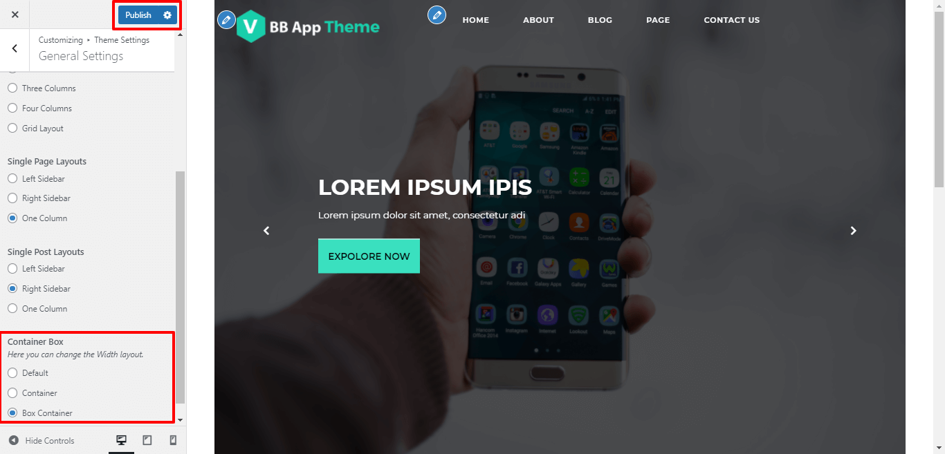 After Selecting Box-Container layout themes will look like screenshot