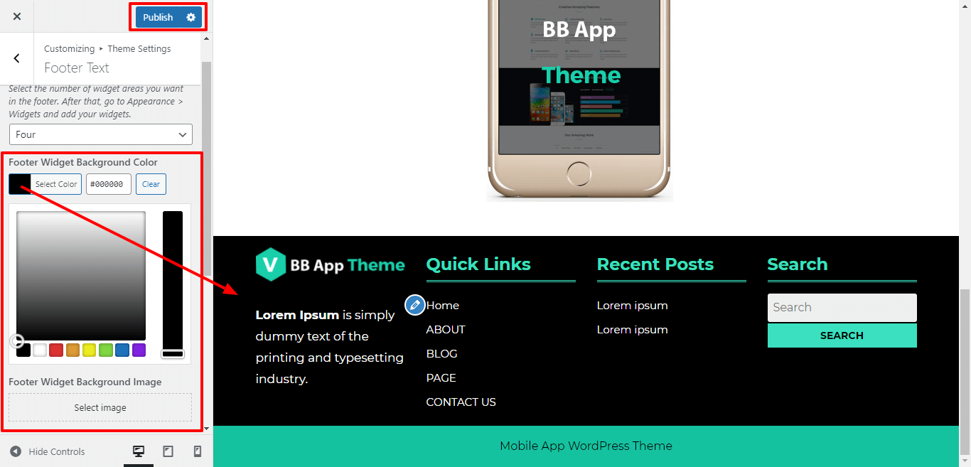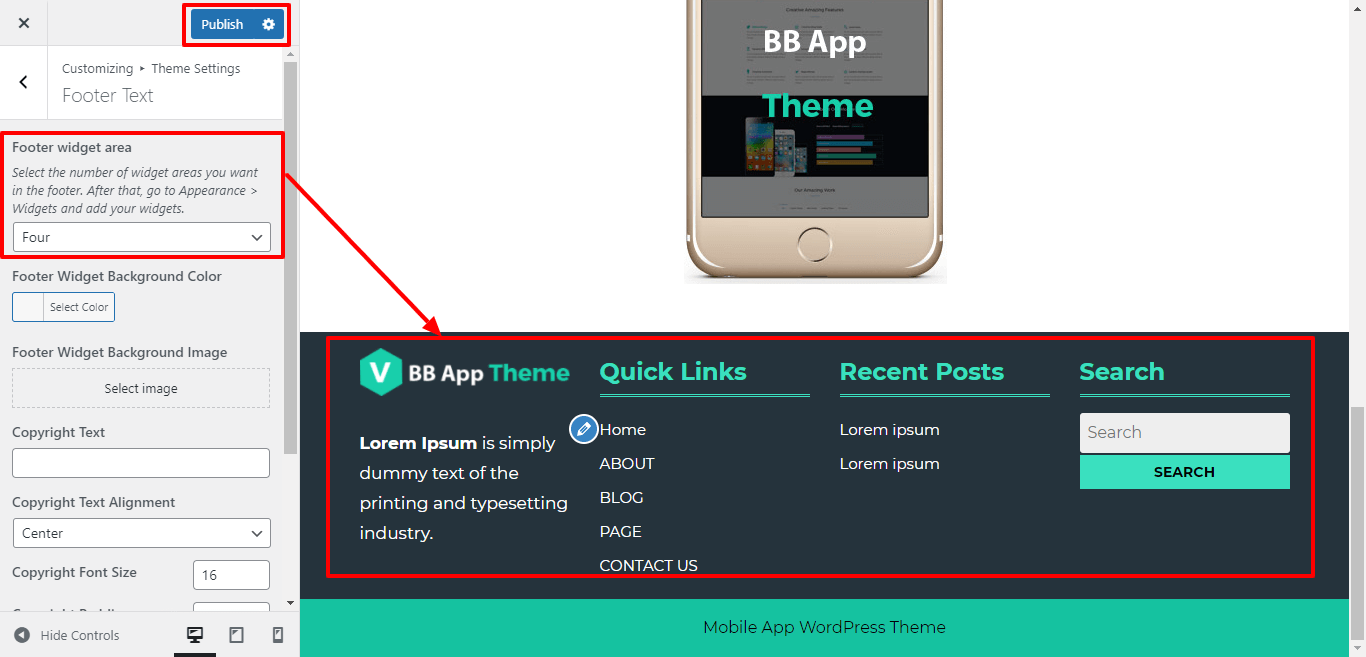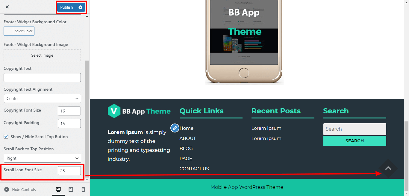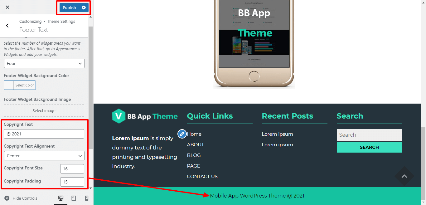 Here you can add the copyright text , copyright text alignment, copyright font size and padding for copyright text.