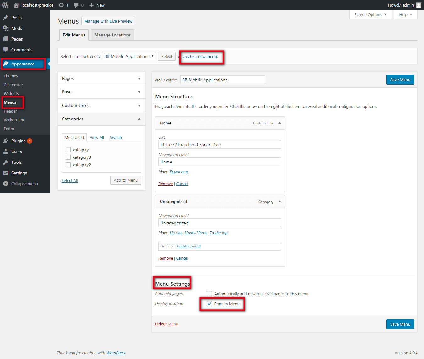 Go to Appearance >> Menu