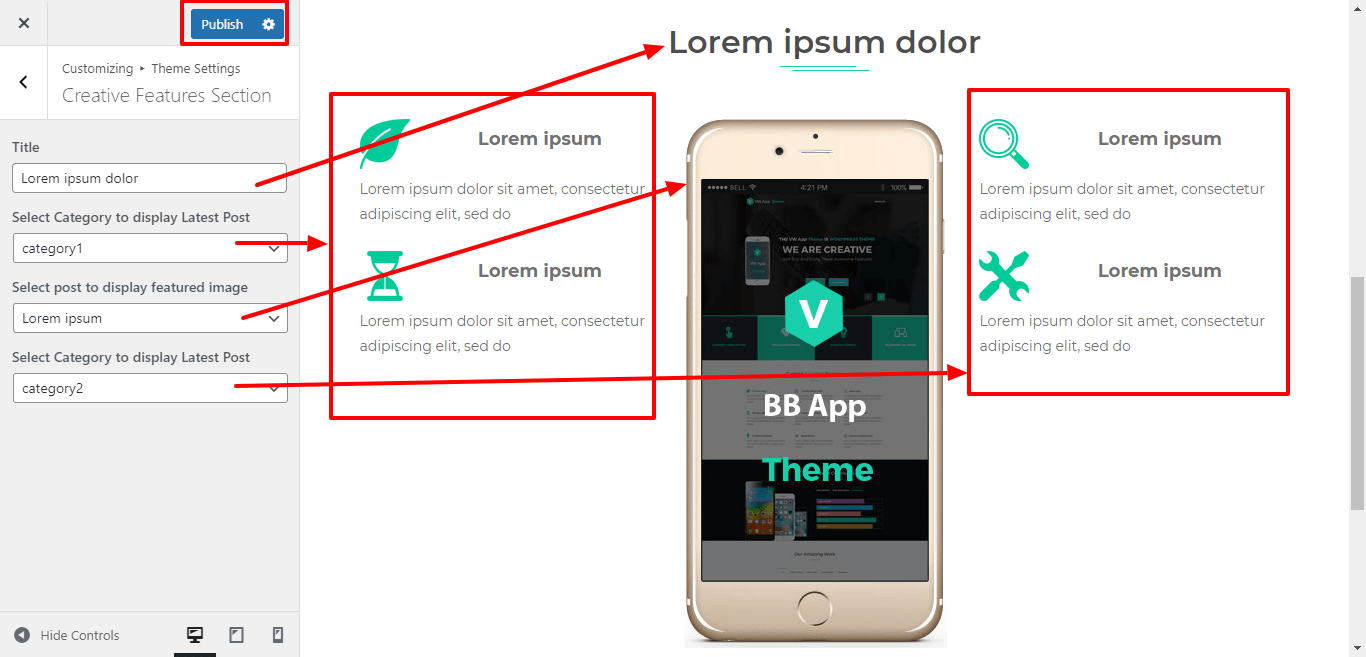 In this way you can setup Creative Feature Section.