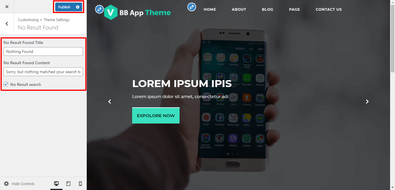 Go to Appearance >> Customize >> Themes Settings >> No Result Found