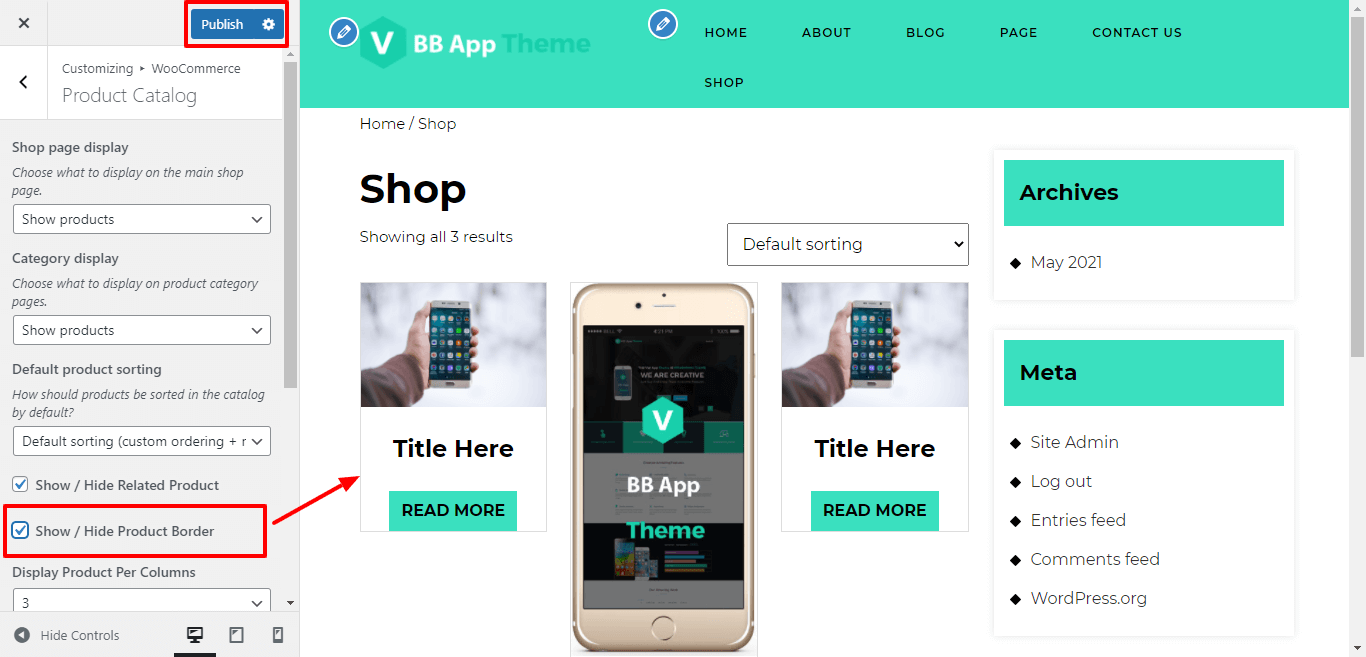 Here You have an option to Show / Hide border of product.